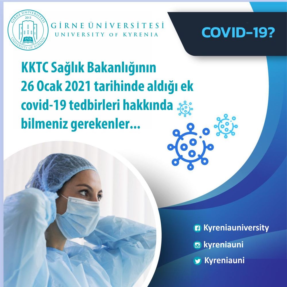 KKTC’de artan Covid-19 vakaları nedeniyle 26 Ocak 2021 tarihinde Sağlık Bakanlığı aşağıdaki ek tedbirleri almıştır.