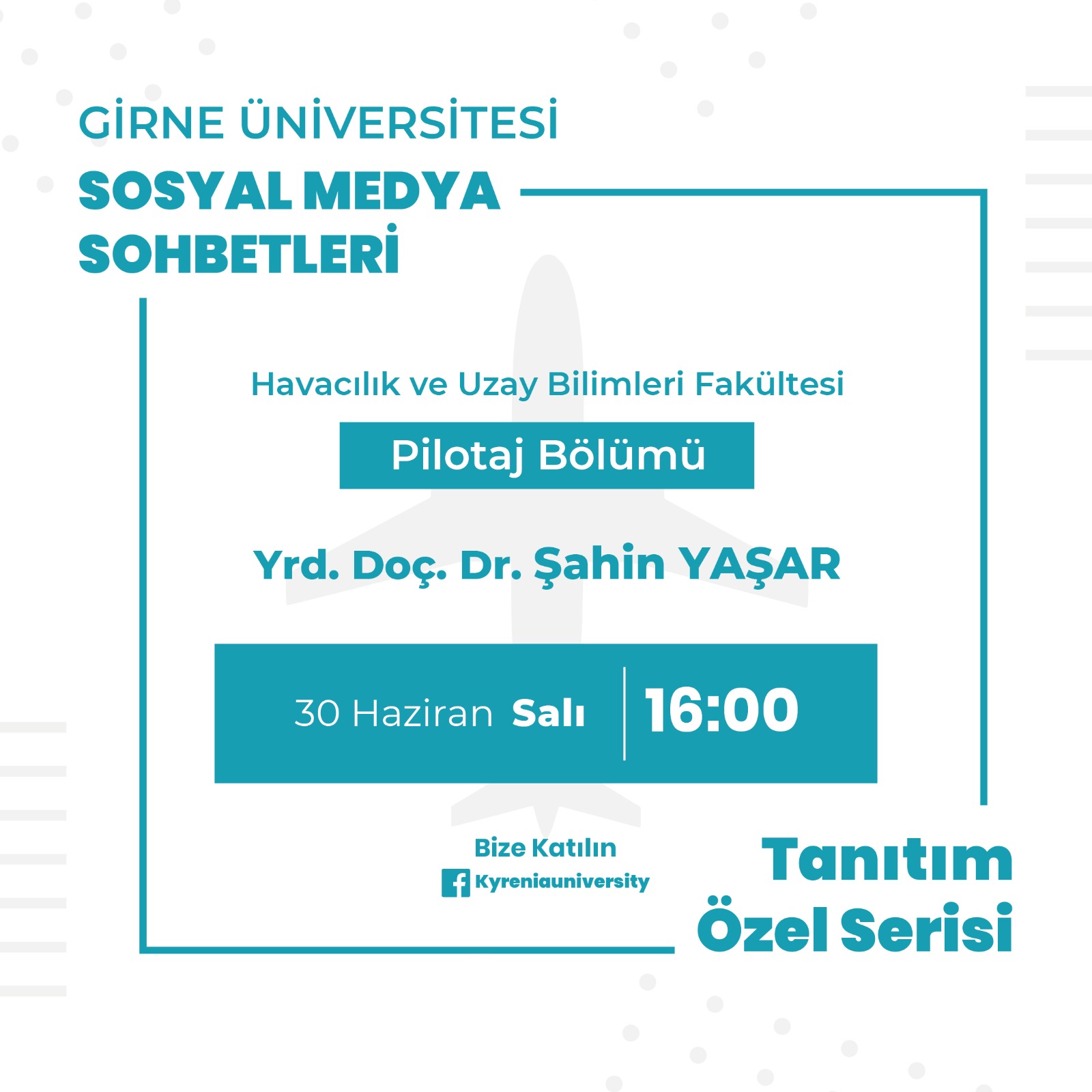 30 Haziran 2020 – Sosyal Medya Sohbetleri Havacılık ve Uzay Bilimleri Fakültesi Pilotaj Bölümü Yrd. Doç. Dr. Şahin Yaşar