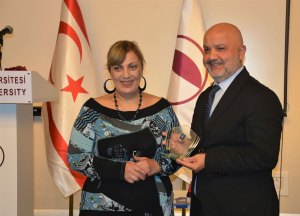 After the speeches, Nino Mgenashvili presented the International Federation of Photographic Art (FIAP) Gold Medal Award to the Turkish Northern Cyprus Turkish artist Mehmet Gökyiğit with his photograph titled “Paramount”. Mgenashvili also presented the plaque of appreciation to the Near East University and Cyprus Museum of Modern Arts for their contributions to art. Prof. Dr. Tamer Şanlıdağ accepted the plaque on behalf of the universty and the museum. Photographers Cristakis Christou, Romos Kotsonis and George Yiallouris also received the awards they won as part of the discussion at the Near East University.