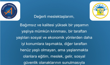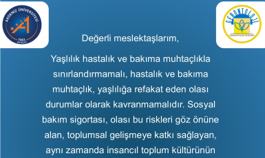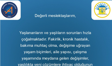12 Mayıs 2021 Demografik Yaşlanmanın İş Dünyasına Etkileri 06 Mayıs 2021 Planlar 22 Nisan 2021 Kulağımıza Küpe Olmalıdır 15 Nisan 2021 Aşı ve Yaşlılık İmajı 08 Nisan 2021 Namus Temizleyicileri 31 Mart 2021 Hastasıyız Biz Onun 24 Mart 2021 Yaşlanan Dünyada Su ve Ekmek Sorunu 18 Mart 2021 Sabun, Su ve Gerontoloji 11 Mart 2021 Dünya Kadınlar Günü 25 Şubat 2021 Yaşlılık Politikaları Devlet Politikası Olmalıdır 17 Şubat 2021 Dedenin Telefonu 11 Şubat 2021 Yaşlılık İzleri 03 Şubat 2021 Yaşlanmak ve İhtiyarlamak 01 Şubat 2021 Yaşlılık ve Kişilik 21 Ocak 2021 Kıyamet Ne Zaman Kopacak? 13 Ocak 2021 İnsan, İnsanlık ve Yaşlanmak 06 Ocak 2021 Balta, İnsan, Uzun Ömürlük 31 Aralık 2020 Veda Pastası 23 Aralık 2020 Her Yerde Yaşlı Var, Hiçbir Yerde Gerontolog Yok 17 Aralık 2020 Gerontologların Bilgisinden Niçin Yararlanmalıyız 10 Aralık 2020 “Antiaging” Kavramının Düşündürdükleri 02 Aralık 2020 Hangi Gerontolojiye İhtiyacımız Var? 27 Kasım 2020 Yaşlı Bakımı: Teknikerlik mi, bakıcılık mı?