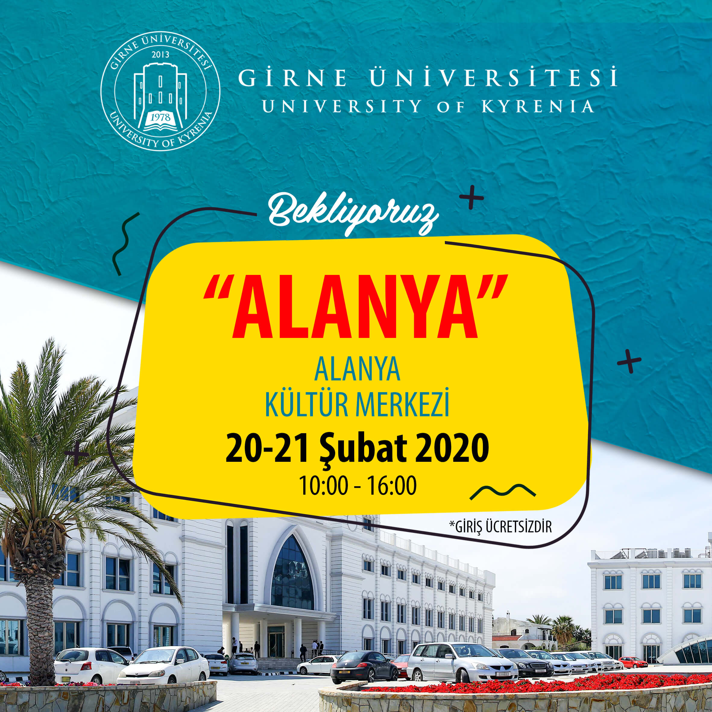 Eklenme Tarihi: 17 Şubat 2020, 09:23 Paylaş: Girne Üniversite ile ilgili tüm sorularınızı ve merak ettiklerinizi temsilcilerimize ve okul yetkililerimize sorabilirsiniz. ”Yeni Ufuklara’ yol almak için sizi 20-21 Şubat’ta Alanya Kültür Merkezi’ne bekliyoruz.