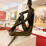 In his statement Petr Subbotin said; “This artwork is devoted to human carelessness. The world is not the chaos of phenomena, processes and objects, but rather a regular, interconnected whole. The category of “cause and effect “is one of the specific forms of this connection. We often do what we already know the consequences of. Boredom is a peculiar feature only. The man sitting in the statue represents boredom. The presence of a boomerang shows the inevitability of the chin for his actions. The standing man in the statue raises his arm to shoot. The category of “cause and effect” is a necessary condition for a human being to know the world.”