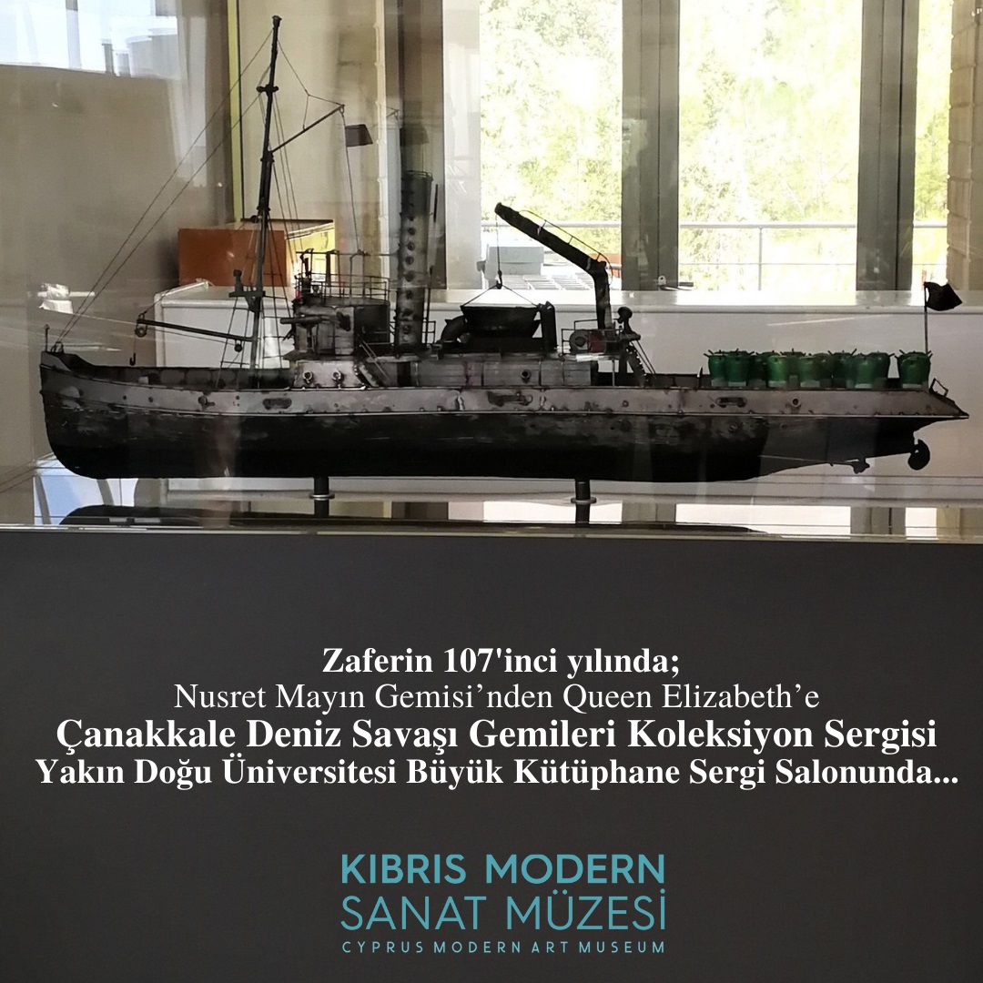 Yakın Doğu Üniversitesi Büyük Kütüphane sergi alanında ziyarete açık olan Çanakkale Deniz Savaşı Gemileri Koleksiyon Sergisi, bu destansı savaşta yer alan 26 geminin 1/100 ölçekli gerçekçi maketleri ile dönemin en ünlü Türk, İngiliz ve Fransız gemilerini bütün detayları ile gün yüzüne çıkarıyor. Muavenet-i Milliye gemisinin, dönemin son teknolojisine sahip Kraliyet Donanması ön dretnotu HMS Goliath başta olmak üzere pek çok gemiyi batırdığı torpidoları ve Nusret Mayın Gemisi’nin İrresistible, Ocean ve Bouvet adlı 3 büyük savaş gemisini batırdığı deniz mayınlarının birebir ölçekli modelleri de bu eşsiz koleksiyonda yer alıyor. Muavenet-i Milliye’nin kaptanı Yüzbaşı Ahmet Saffet Ohkay ve Nusret Mayın Gemisi’nin kaptanı Yüzbaşı Tophaneli İsmail Hakkı Bey’in portreleri ile Çanakkale Deniz Savaşlarını resmeden eserler de, ziyaretçilerine 107 yıl önce yaşanan bu destanı yeniden yaşatıyor.