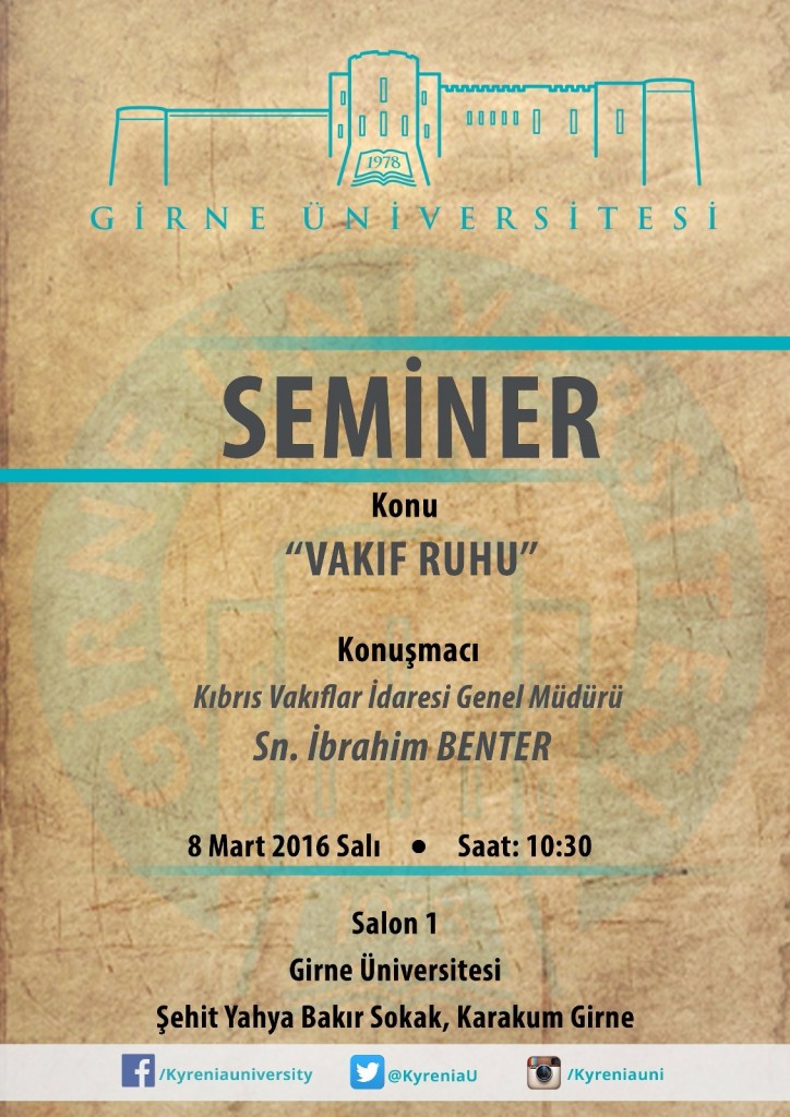 The Administrator of Cyprus Foundations General Manager Mr. İbrahim Benter will deliver a seminar in University of Kyrenia