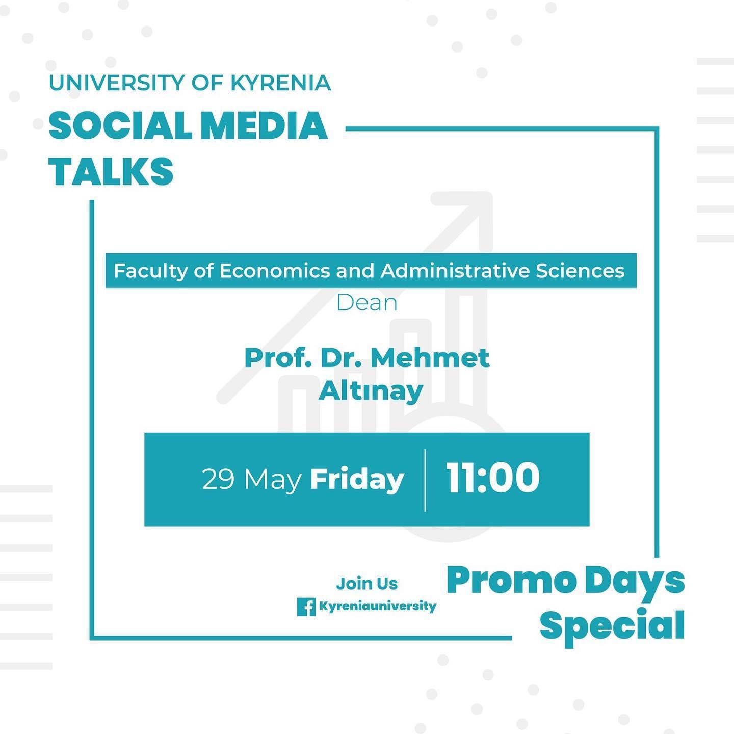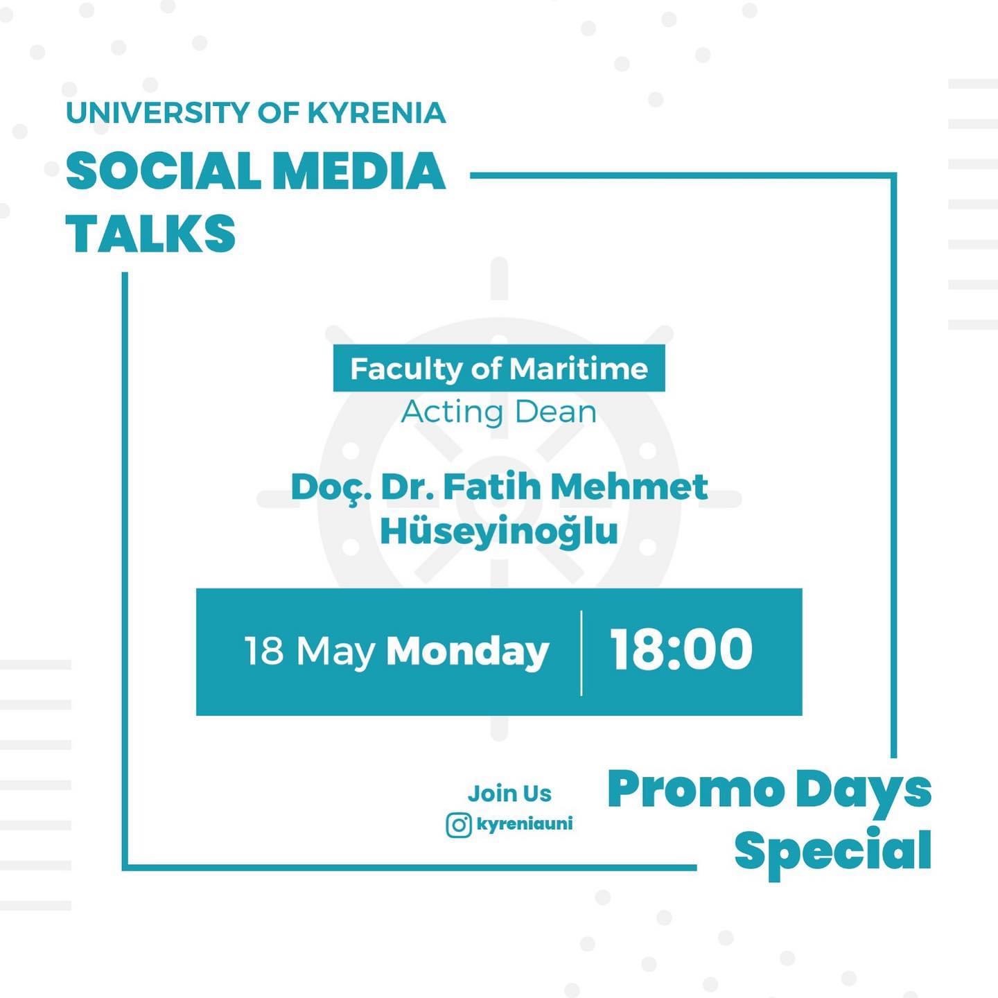 University of Kyrenia Social Media Talks Promo Special guest will be the Acting Dean of Maritime Faculty Assist. Prof. Fatih Mehmet Hüseyinoğlu today at 18:00.