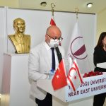 It was stated that after the speeches, Chairman of the Board of Trustees of Near East University Prof.Dr. İrfan S.Günsel presented the FERGÂNÎ award to Murad Allahverdiyev. Later, the bronze bust created by the Kyrgyzstan Sculptor İsken Abdaliev was opened, followed by the ribbon cutting ceremony of the personal exhibition. It was indicated that the exhibition was available to visit until 9th August 2020 during 08:00-16:00 at the exhibition hall of the Faculty of Dentistry of Near East University.