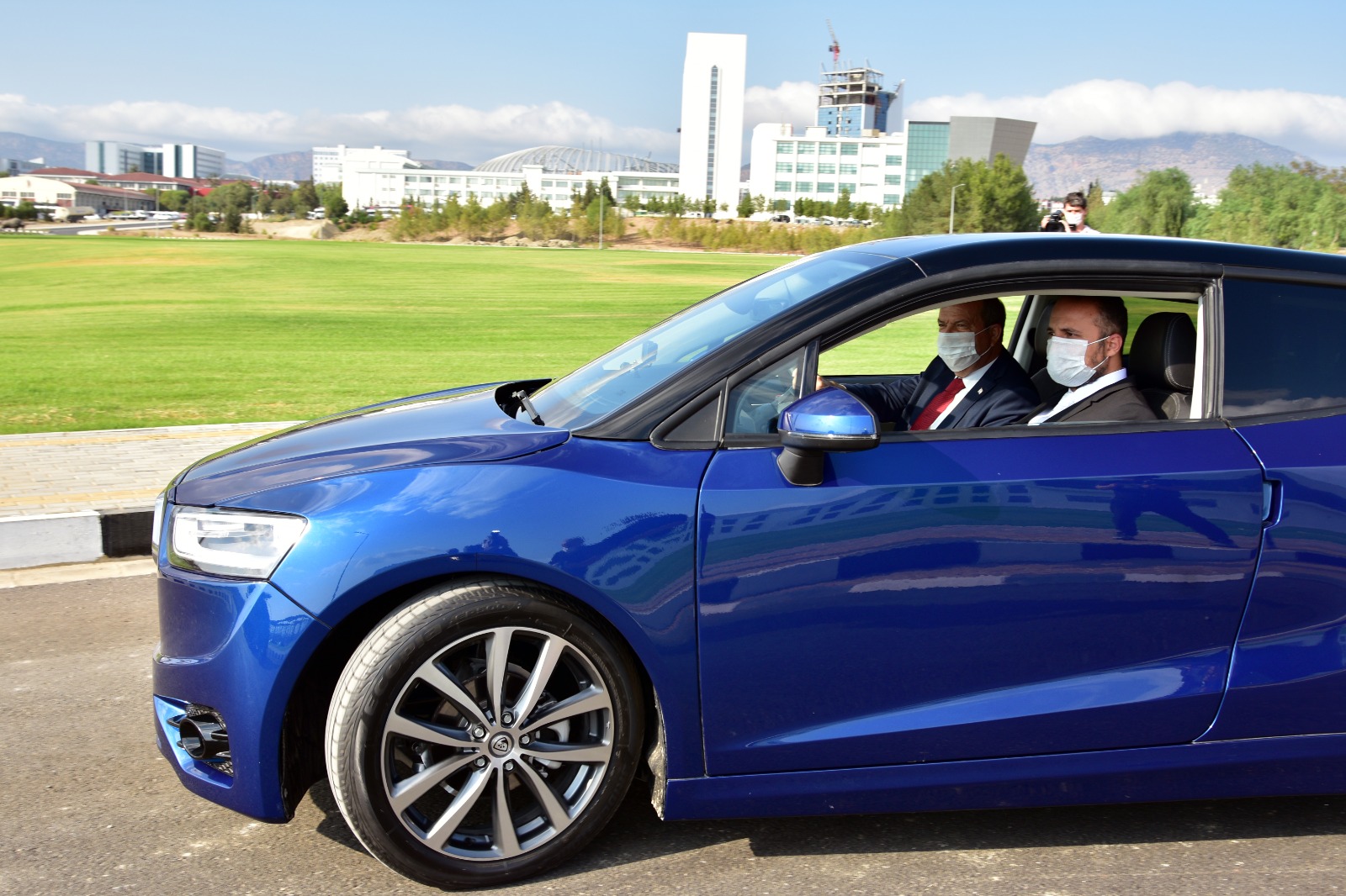 Cumhurbaşkanı Ersin Tatar, Yakın Doğu Üniversitesi bünyesinde Türk mühendis ve tasarımcıların 10 yıllık çalışma ve 1,2 milyon saat emekle geliştirdiği KKTC’nin ilk yerli otomobili GÜNSEL’in ilk modeli B9 ile test sürüşü yaptı.