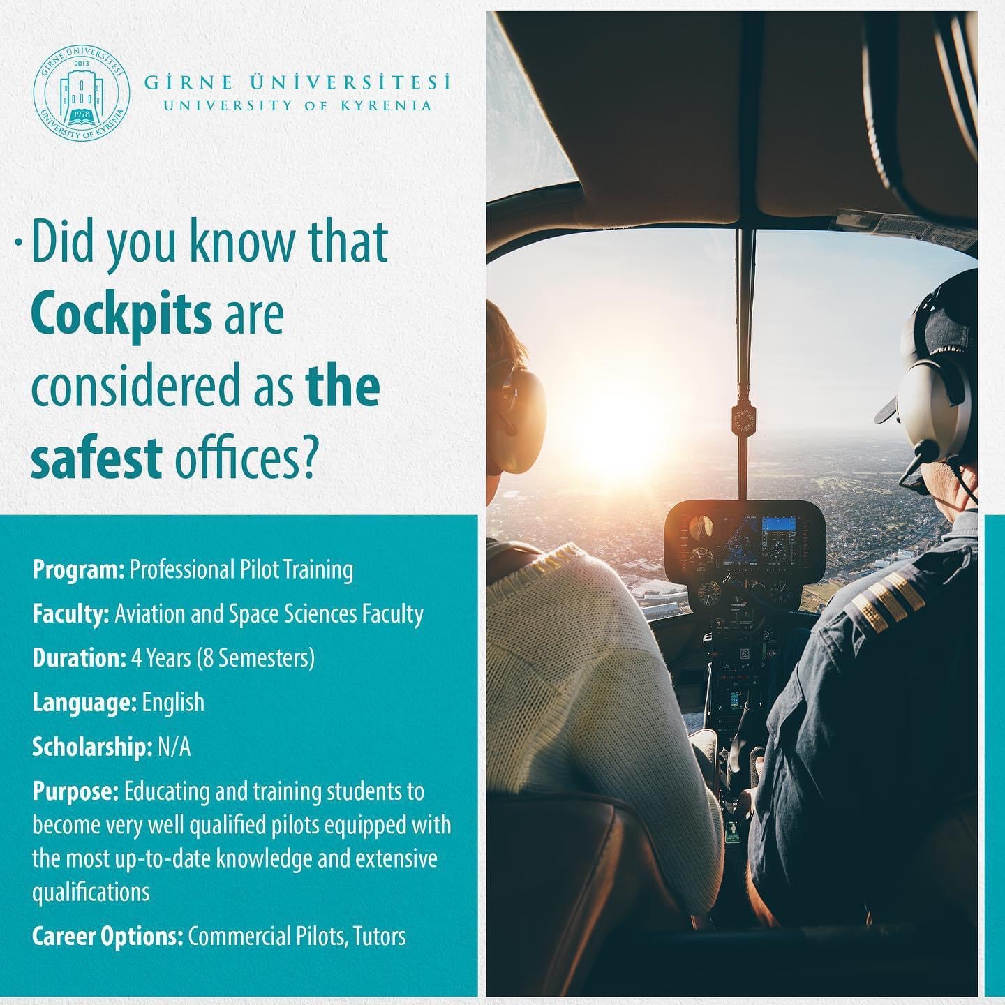 University of Kyrenia proudly offers a golden opportunity for their candidate pilots!! Within the scope of University of Kyrenia – Turkish Airlines Cooperation Protocol, the students who successfully completed their training and fulfilled their obligations and comply with the conditions determined by Turkish Airlines will be evaluated for the second candidate pilot election process.