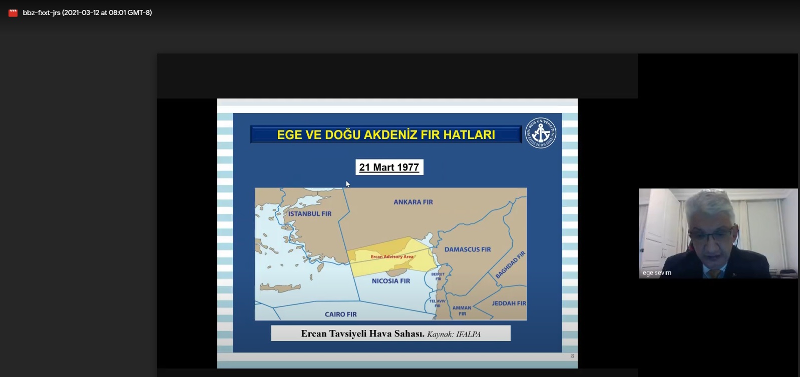 Sevim; arama ve kurtarma bölgelerinin uluslararası hukuktaki yeri, Ege ve Doğu Akdeniz FIR hatları, konuya ilişkin hukuki boşluklar ve ayrıca Türkiye, Yunanistan, KKTC ve diğer bölge ülkelerinin taraf olduğu anlaşmalar gibi başlıkları detaylı olarak örnekler üzerinden anlattı.