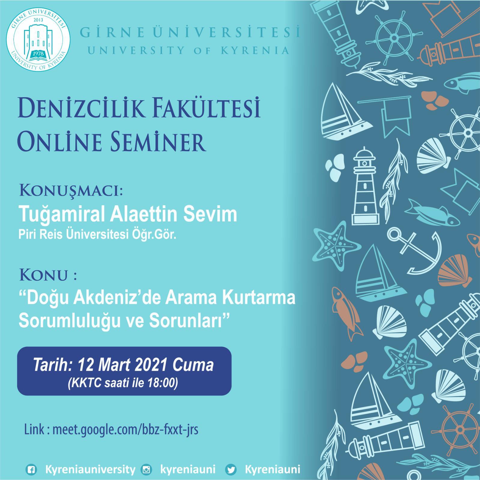 Girne Üniversitesi Denizcilik Fakültesi “ Doğu Akdeniz’de Arama Kurtarma Sorumluluğu ve Sorunları” başlıklı bir çevrimiçi seminer düzenledi.