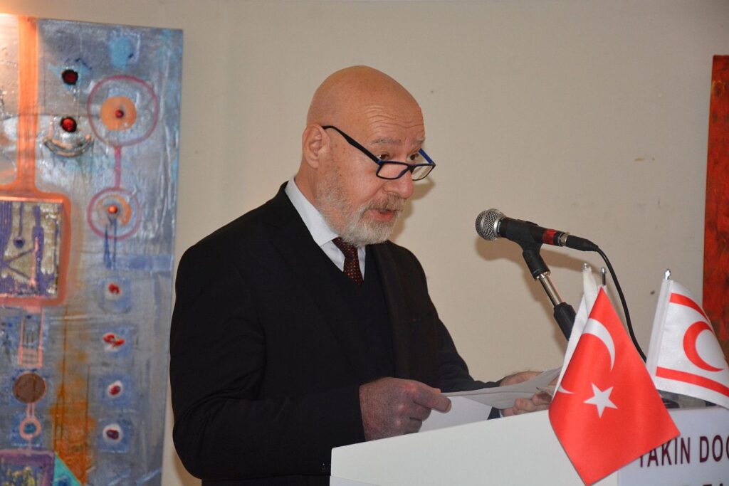Yakın Doğu Üniversitesi Güzel Sanatlar ve Tasarım Fakültesi Dekanı Prof. Erdal Aygenç ise konuşmasına sanatın bireyler üzerindeki olumlu etkilerini vurgulayarak başladı. “Sanat, rutin hayatın monotonluğundan sıyrılarak bizi farklı deneyimlere davet eder ve yaşamın derin sorularını düşünmeye yönlendirir. Aynı zamanda tutkulu bir şekilde, önyargılarımızla yüzleşmemizi sağlar” ifadelerini kullanan Prof. Erdal Aygenç, “Günümüzdeki çatışmaların ve siyasi kutuplaşmanın arttığı bir dönemde, sanat sorgulama, hayal etme ve diyalog kurma imkanı sunar. Çünkü sanat, her konuya farklı perspektiflerden bakılabileceğini gösterir ve çoklu anlamların ortaya çıkmasına izin verir” dedi.