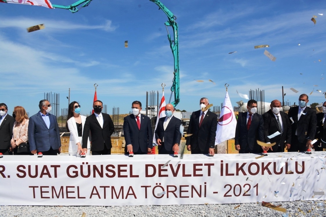 Dr. Suat Günsel Devlet İlkokulu’nun 23 Nisan Ulusal Egemenlik ve Çocuk Bayramı’nda gerçekleştirilen temel atma töreni, Şehit İlker Karter İlkokulu öğrencileri Doğa Aydın’ın konuşması ve Sezgin Orkun’un şiir okuması ile başladı. Yakın Doğu Oluşumu Mütevelli Heyeti Başkanı Prof. Dr. İrfan Suat Günsel, İskele Belediye Başkanı Hasan Sadıkoğlu, Milli Eğitim ve Kültür Bakanı Olgun Amcaoğlu ile Başbakan Ersan Saner de sırasıyla birer konuşma yaptı.