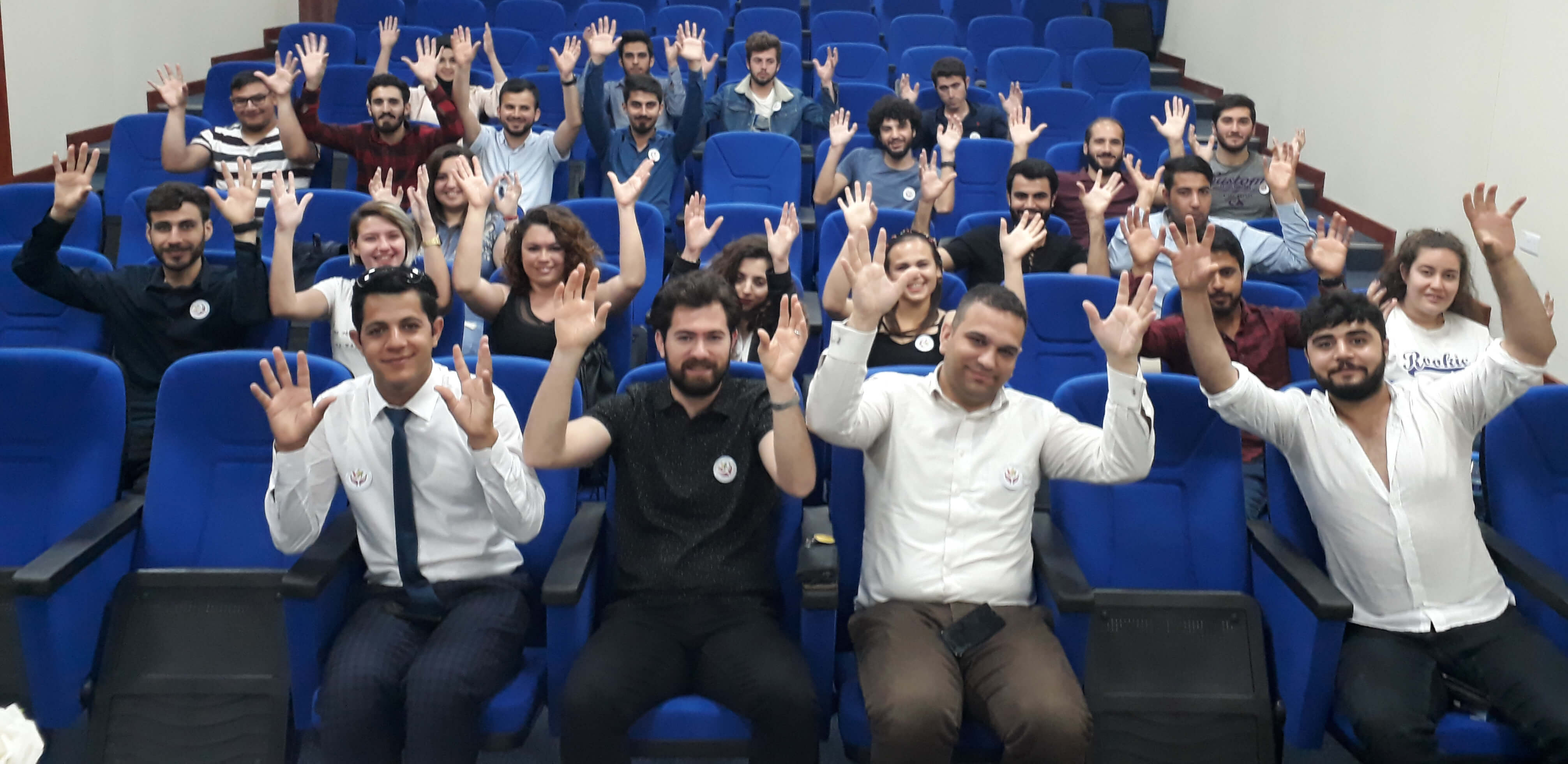 Yard. Doç. Dr. Emrah Soykan, Türk İşaret Dili temalı konuşmasında işaret dilinin önemine vurgu yaparken, birçok özel ve devlet kurumunda konuşma engelli bireylerin işlemlerini yaptırırken çalışanların işaret dili bilmemesinden dolayı güçlük çektiğini ve işaret dilinin özellikle kurumlarda öğrenilmesi gerektiğinin altını çizdi. Konuşmasında, işaret dilinin kolayca öğrenilebileceğini belirten Soykan, katılımcılara işaret dili ile konuşma örnekleri ile pratik yaptırdı.