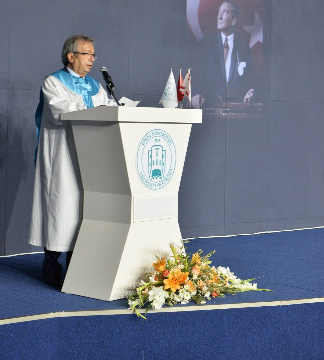 Girne Üniversitesi Rektörü Prof. Dr. İlkay Salihoğlu, Rektör Yardımcısı Prof. Dr. Gökmen Dağlı, genel sekreter, dekanlar, enstitü müdürleri, meslek yüksekokulu müdürleri, başhekimler, öğretim üyeleri, öğrenciler ve ailelerin katıldığı törenlerin başlangıcında öğrencilerin salona alkışlarla girmesinin sonrasında saygı duruşunda bulunuldu ve İstiklal Marşı okundu.