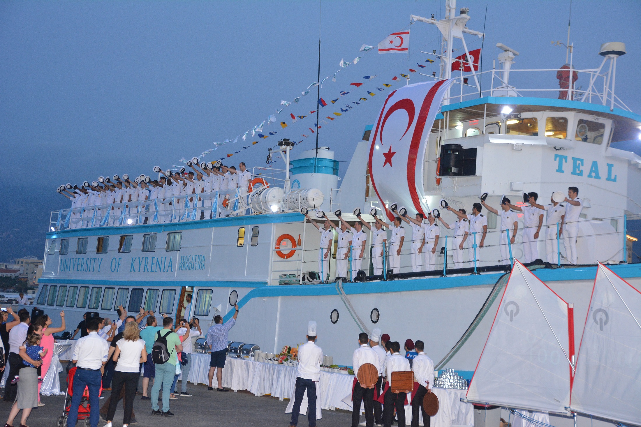 University of Kyrenia Graduation Ceremony for 2016-2017 spring term took place at the University Campus and continued at the New Port of Kyrenia where the University research and training ship TEAL is anchored.