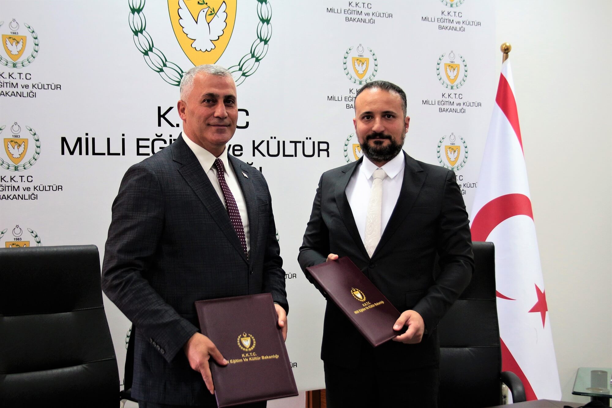 KKTC Milli Eğitim ve Kültür Bakanı Olgun Amcaoğlu ve Yakın Doğu Oluşumu Mütevelli Heyeti Başkanı Prof. Dr. İrfan Suat Günsel protokol töreninde proje ile ilgili açıklamalarda bulundu.