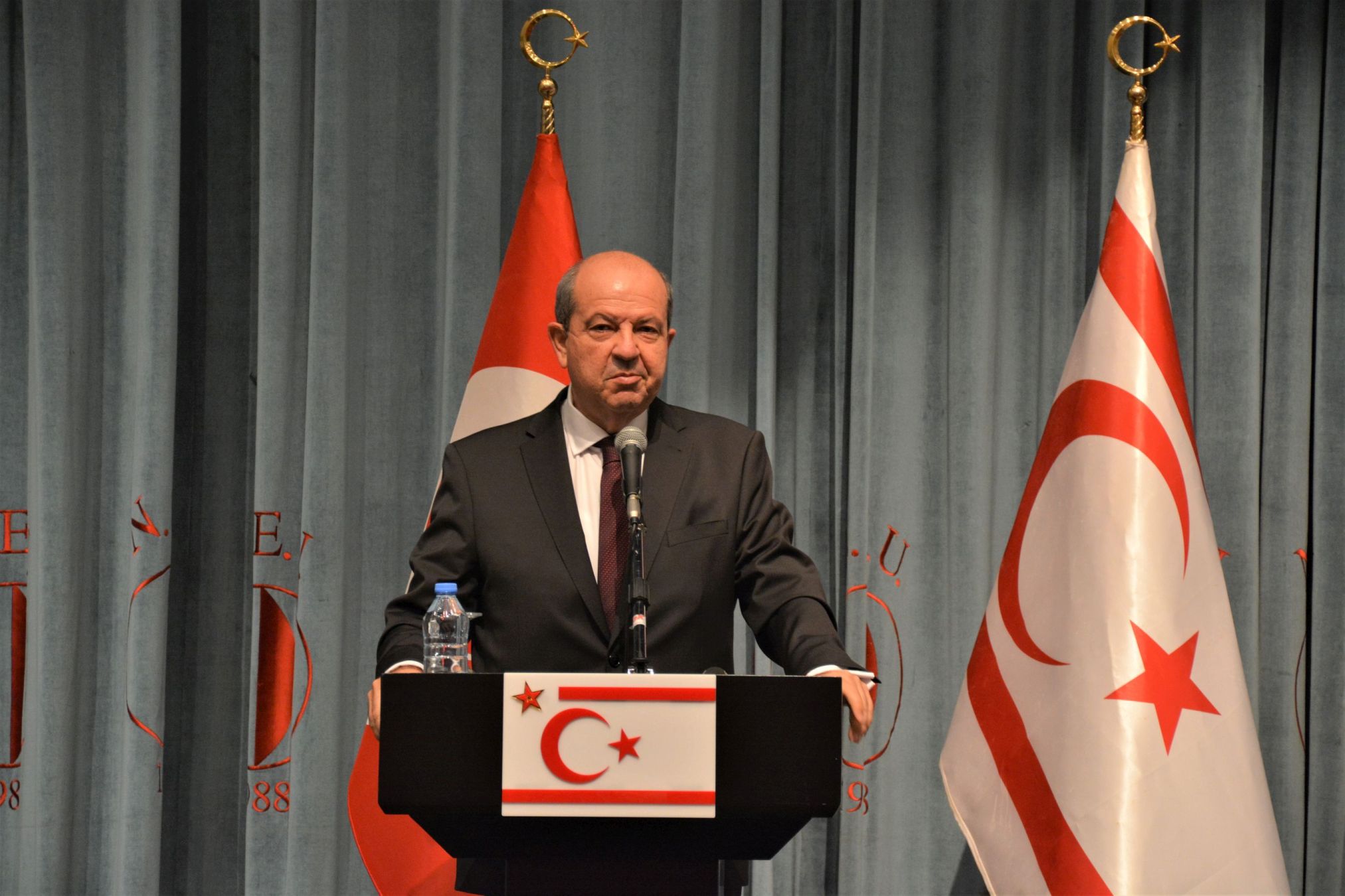 Kıbrıs Modern Sanat Müzesi’nin 385 ve 386’ncı sergilerinin açılışını gerçekleştiren Cumhurbaşkanı Ersin Tatar, son bir haftada Yakın Doğu Üniversitesi kampüsünde düzenlenen 5 ayrı sergiyi açtığını hatırlatarak, “Sanatsal üretimi çok önemsiyorum. Mavi Vatan olarak sanatımızla, kültürümüzle ve tarihi geçmişimizle tüm dünyanın gözü önündeyiz” ifadesini kullandı.