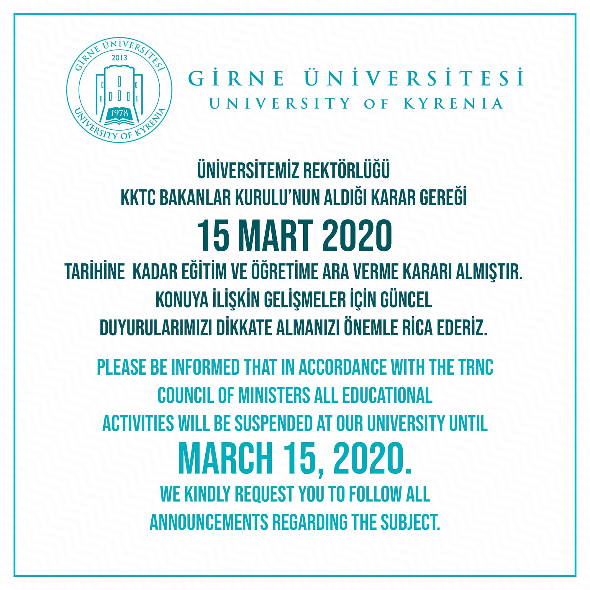 According to the decision of the Council of Ministers dated 10 March 2020, the decision to suspend education and training until 15 March 2020 includes the following: