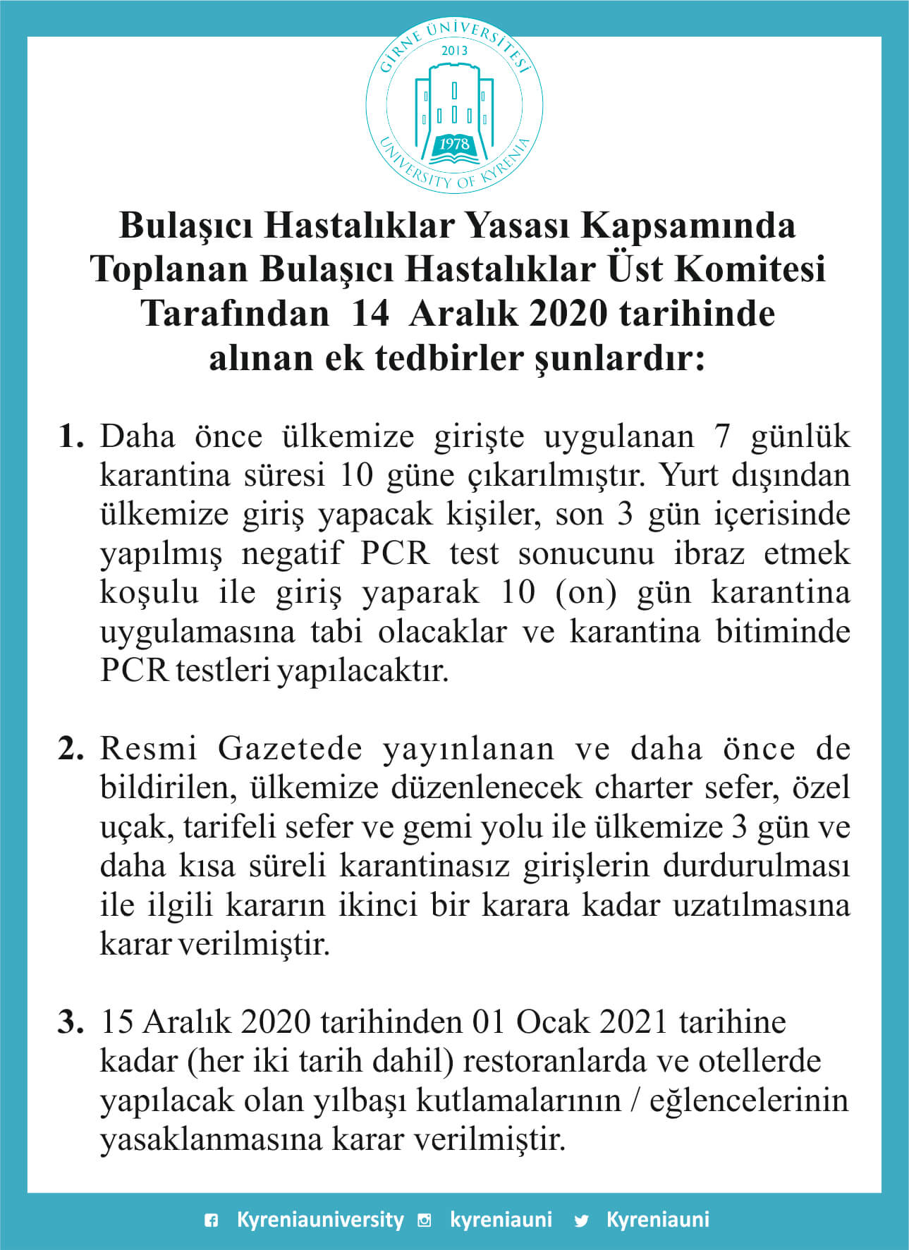Karantina Kararları- 14.12.2020