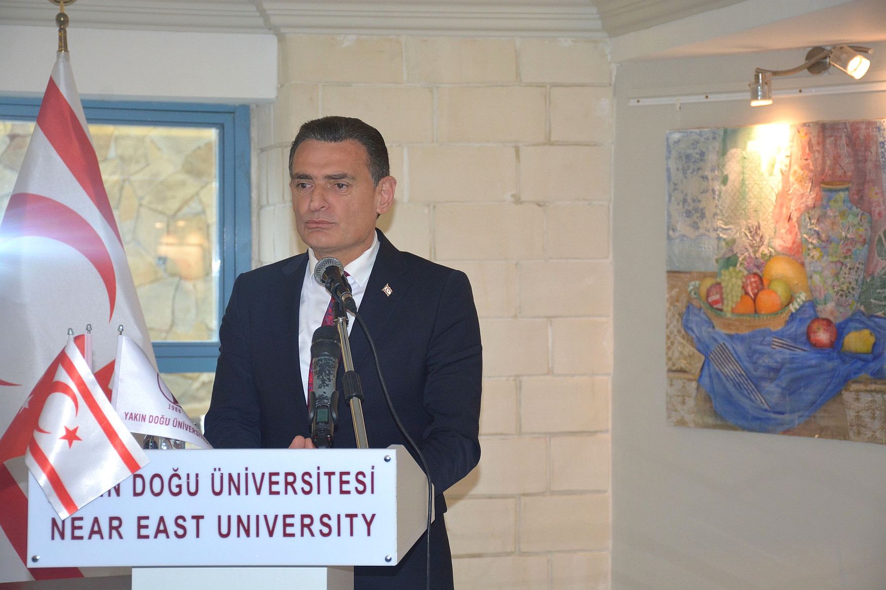 Yakın Doğu Üniversitesi’nin ve Günsel Ailesi’nin imza attığı pek çok proje ile KKTC’nin eğitim, sağlık, otomotiv, kültür, sanat alanlarına öncülük ederek ilklere imza attığını vurgulayan İçişleri Bakanı Dursun Oğuz, ülkenin ekonomik gelişimi kadar kültür sanat alanındaki gelişiminin de son derece önemli olduğunu söyledi.