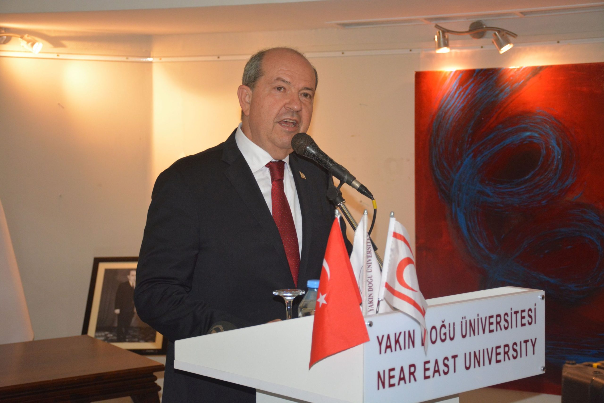 Konuşmasına, “Sizlerle bu güzel ortamda birlikte olmaktan mutluluk duyuyorum” sözleriyle başlayan Cumhurbaşkanı Ersin Tatar, içinde bulunduğumuz haftanın “21 21-25 Aralık Milli Mücadele ve Şehitler Haftası” olduğunu hatırlatarak, “Dün yine Yakın Doğu Üniversitesi Atatürk Kültür ve Kongre Merkezi’nde yer alan o muhteşem salonda Güvenlik Kuvvetleri Komutanlığımızın orkestrasının büyük bir başarıyla icra ettiği oratoryosunu izledik. Hepimiz tekrar o zor ve acılı günlerde olanları yeniden yaşadık. Diğer yandan, o zor günleri geride bırakarak bugünlere ulaşmanın gururunu da yaşadık” ifadesini kullandı.