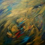 Kompozisyonlarımda resmin soyut ögelerini kullanmayı seviyorum. Bazen sonsuz mekân duygusu belirsiz bir mekâna dönüşürken, bazen de iki boyutlu düzlemsel bir yapıya dönüşebiliyor. Bu mekânlarda rengin ve boya dokusunun ön plana çıktığı, izleyicinin yer yer somut ipuçları yakalayabileceği gizlenmiş figürler bulunmaktadır. Son sergim için yaptığım çalışmalarda, tüm bunların yanında mekâna yansımalar da eşlik etmektedir.” İfadelerini kullandı