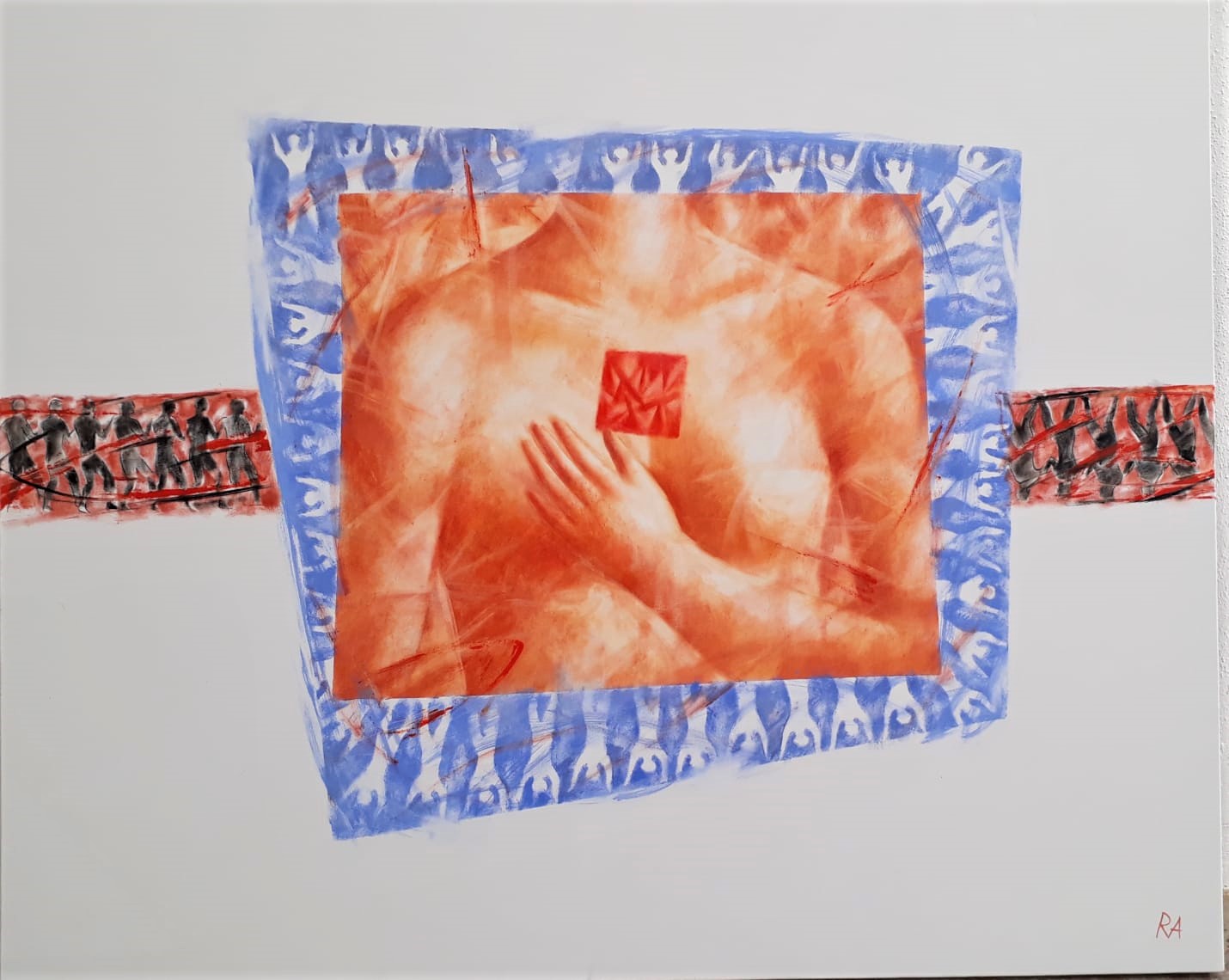 “Halı ile Adam” adlı çalışması ise Orta Asya’da bulunan bir taşı tasvir ediyor. Sanatçı, eski Türklerin arkeolojik kazılarla ortaya çıkan mirasının yansıması olarak tasarladığı bu heykel ile ulusal halıların desenlerinde zamanla kaya petrogliflerinin kullanıldığını vurguluyor.