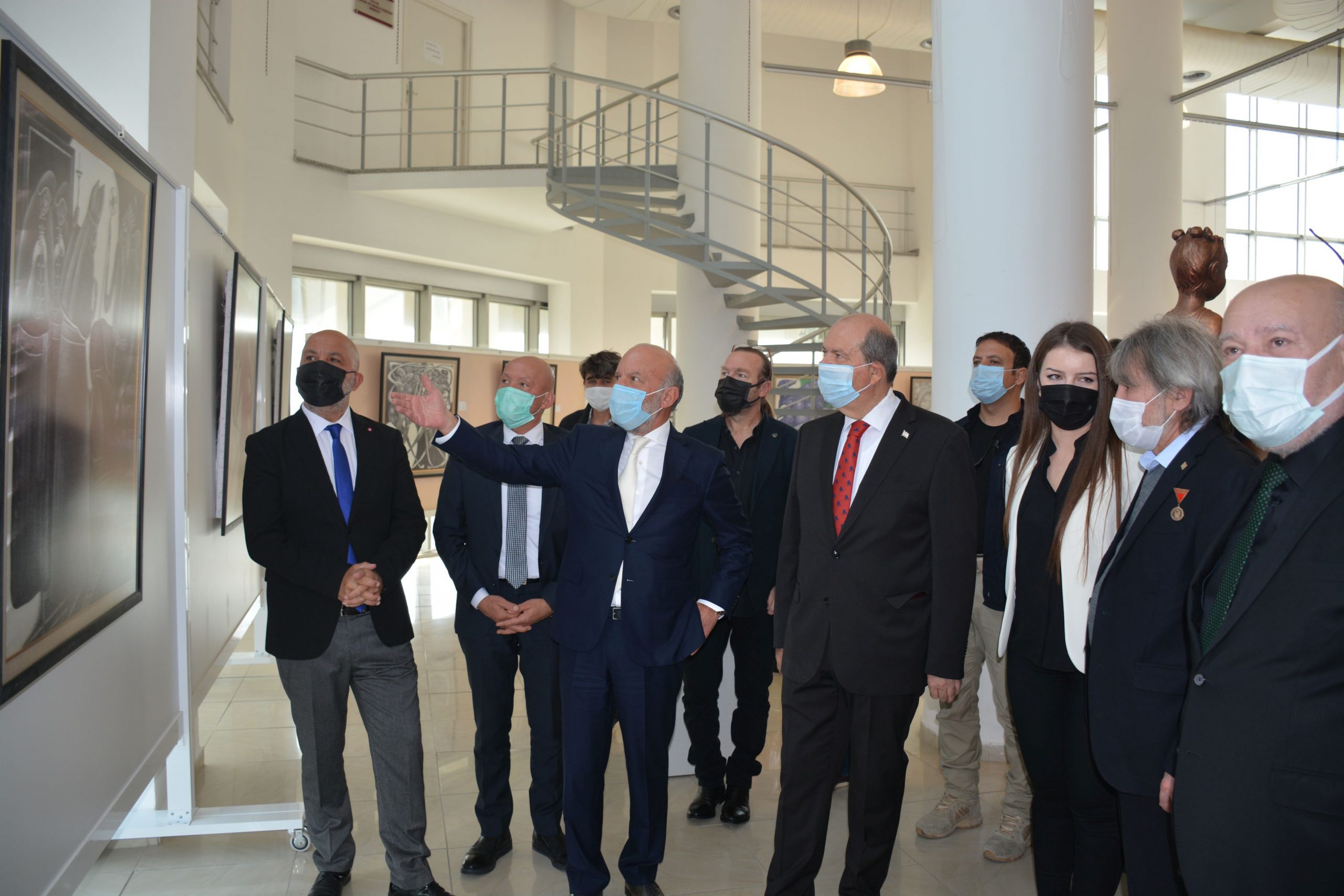 Kuzey Kıbrıs Türk Cumhuriyeti’nin 38’inci kuruluş yıl dönümü kutlamaları kapsamında, Kıbrıs Modern Sanat Müzesi’nin düzenlediği, yağlı boya, baskı resim, ipek üzerine tükenmez kalem, heykel ve gemi modellerini bir araya getiren 5 sergi, Cumhurbaşkanı Ersin Tatar tarafından Yakın Doğu Üniversitesi İletişim Fakültesi Sergi Salonunda açıldı.