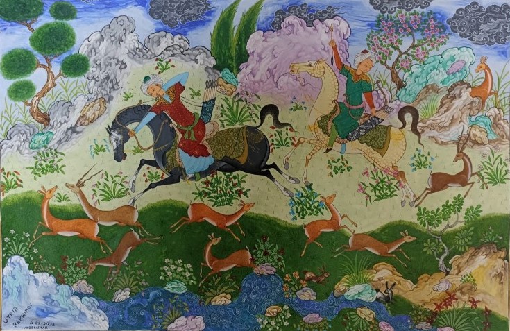 Sanatçı Alovuddin Ashrapov ise “Hüma Kuşu” adlı eserinde, Özbek mitolojisinde, mutluluğun ve özgürlük sevgisinin sembolü olarak kabul edilen Hüma Kuşunu tasvir ediyor.