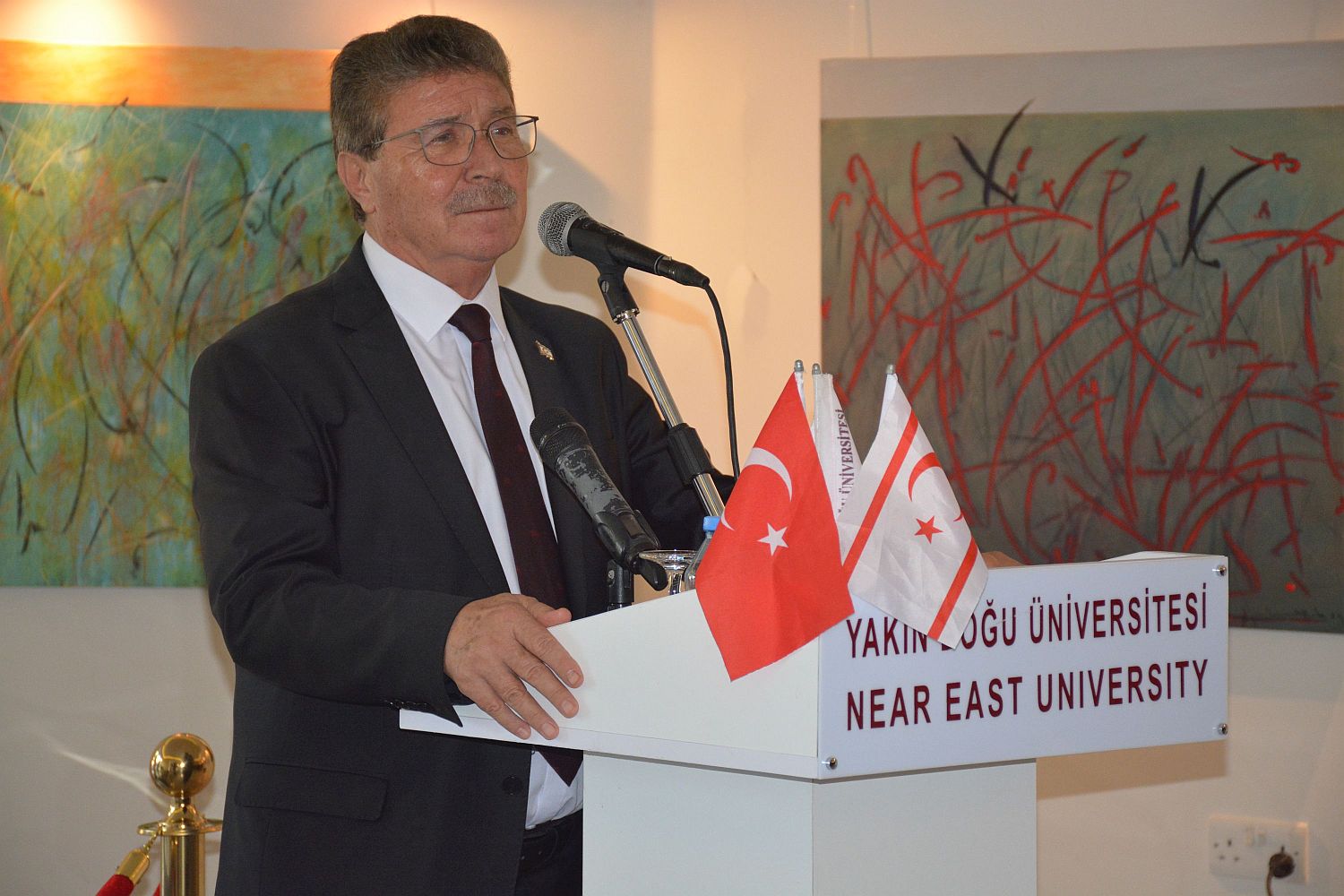Serginin açılış konuşmalarını ise Başbakan Ünal Üstel, Yakın Doğu Üniversitesi Rektörü Prof. Dr. Tamer Şanlıdağ, Kazak sanatçı Mariia Raskin ve Yakın Doğu Üniversitesi Güzel Sanatlar Tasarım Fakültesi Dekanı Prof. Dr. Erdal Aygenç yaptı.