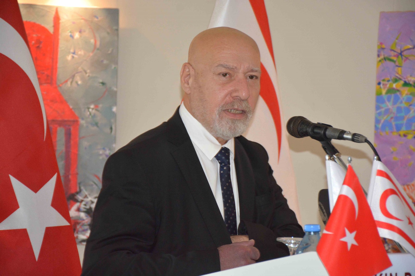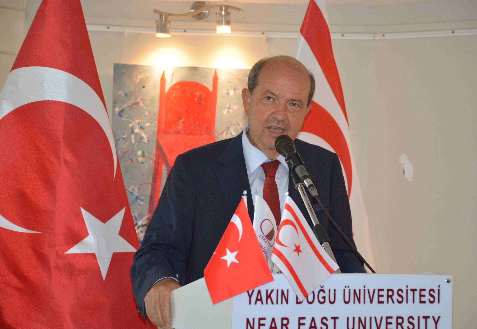 Cumhurbaşkanı Ersin Tatar, konuşmasına; sergi öncesinde gerçekleştirilen “2024-2025 Akademik Yılı Açılış Töreni”nin de verdiği “Kıbrıs İçin Yeni Gelecek: 2 Devletli Çözüm” dersine değinerek başladı. Yeni eğitim döneminin ilk dersinde, ele aldığı konu ile KKTC’de neden iki ayrı halkın ve devletin bulunduğunu anlatmaya çalıştığını belirten Cumhurbaşkanı Ersin Tatar, “Açılış dersinde anlattığım konuları hatırlıyorsunuz. Yakın Doğu Üniversitesi’nin geliştirdiği yapay zeka tabanlı akademisyen AI. Prof. DUX ile tanıştınız, şimdi ise birçok farklı kültürden sanatçının bir araya getirdiği 50 eserle buluştunuz. KKTC’nin bugün hangi aşamaya geldiğini bir kez daha görüyorsunuz” dedi.