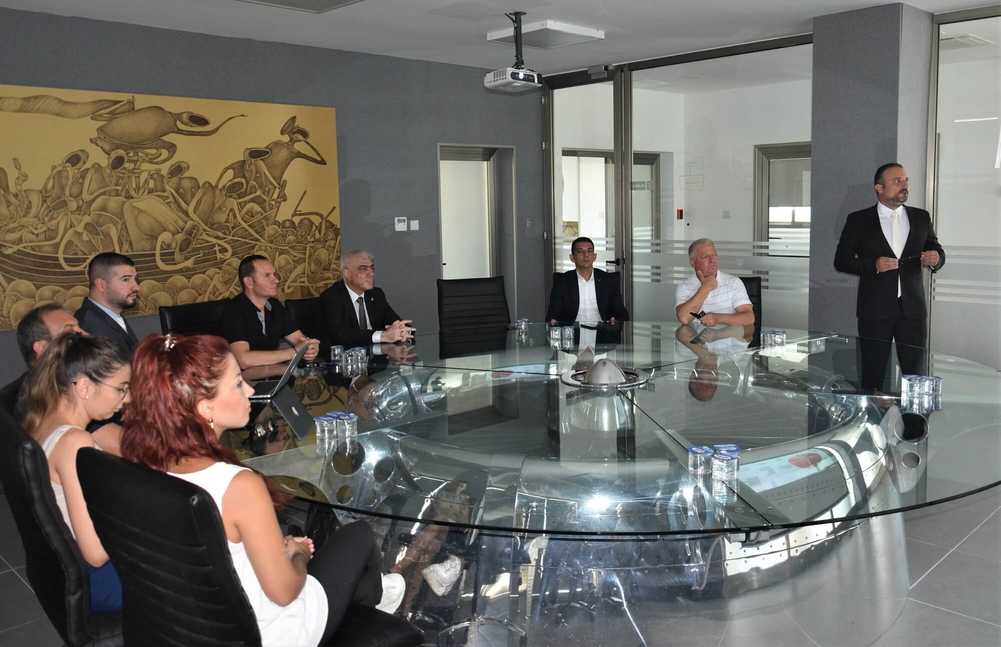 Kıbrıs Türk Sanayi Odası Başkanı Ali Kamacıoğlu ve yönetim kurulu üyelerinin GÜNSEL’in ilk modeli B9’la gerçekleştirdiği test sürüşünün ardından gerçekleştirilen toplantıda, Yakın Doğu Oluşumu Mütevelli Heyeti ve GÜNSEL Yönetim Kurulu Başkanı Prof. Dr. İrfan Suat Günsel, GÜNSEL’in seri üretim çalışmaları, gelecek projeksiyonları ve seri üretim sonrası KKTC ekonomisine yapacağı katkıları anlatan kapsamlı bir sunum gerçekleştirdi.