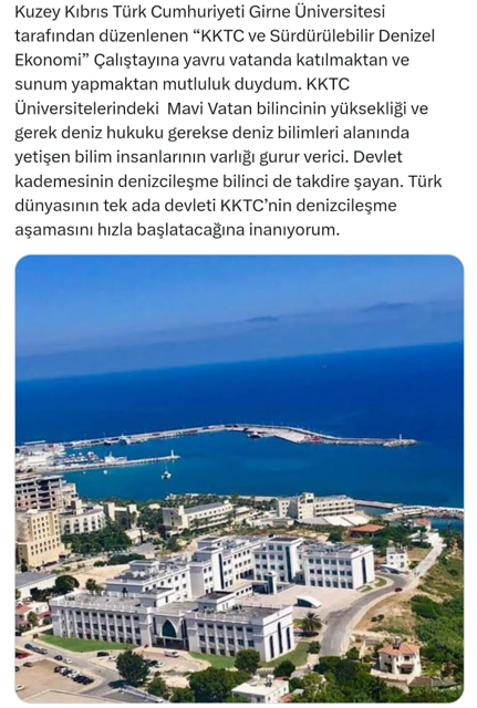 KKTC ve Sürdürülebilir Denizel Ekonomi Konulu 100. Cumhuriyet Sempozyumuna Katılarak Bildiriri Sunan Sayın Cem Gürdeniz Hocamızın Sempozyum ile İlgili Sosyal Medyadan Yayınladığı Mesaj