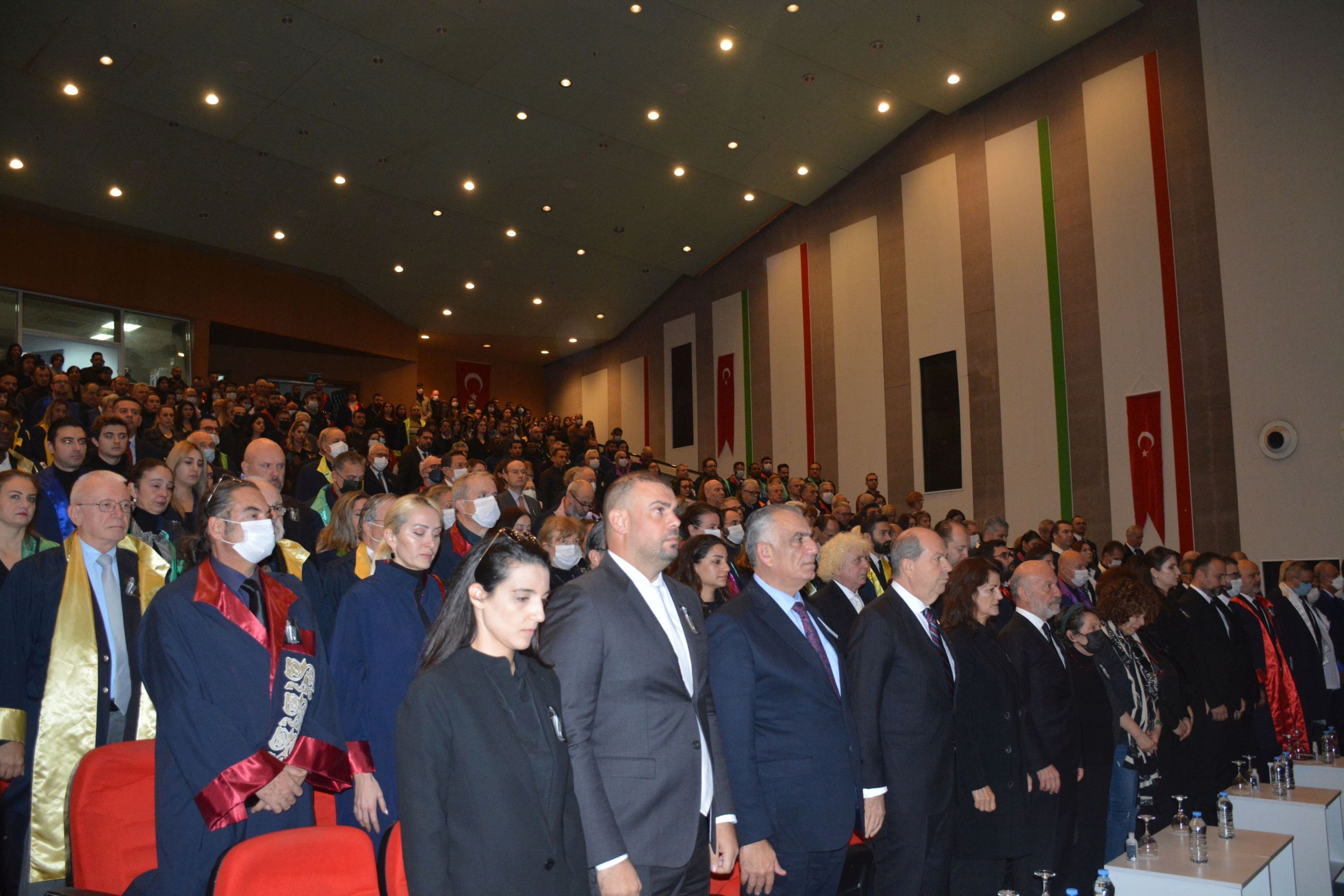 At the ceremony President Ersin Tatar, Minister of National Education Nazım Çavuşoğlu, Chairman of the Board of Trustees of the Near East Enterprises Prof. Dr. İrfan Suat Günsel, Near East University Faculty of Law, History of Law Research Assistant Erkut Ziya Sivrikaya delivered speeches and Süleyman Gündüz delivered a speech on behalf of the students of Near East University.