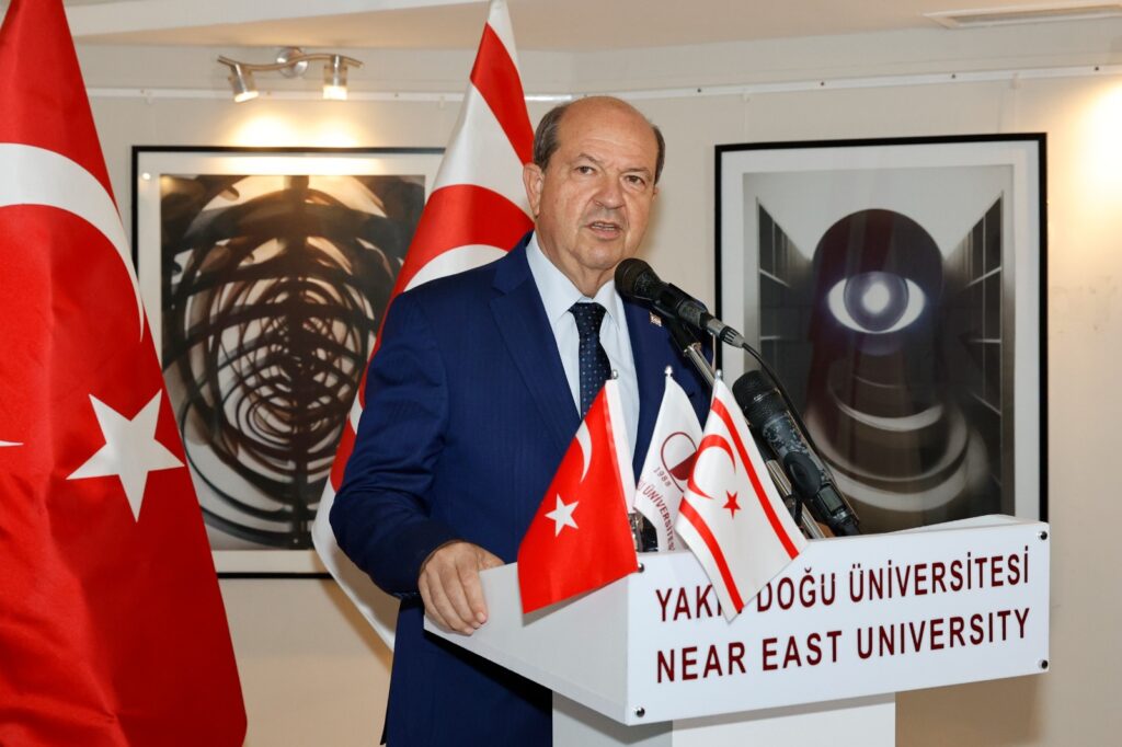 Konuşmasına “Güzel Sanatlar Ekim Sergisi”nde emeği geçen tüm sanatçılara teşekkür ederek başlayan Cumhurbaşkanı Ersin Tatar, “Yakın Doğu Üniversitesi, bir eğitim kurumu olmanın ötesinde, kültür ve sanatı özümseyen ve yaşatan bir değerler yuvasıdır” dedi.