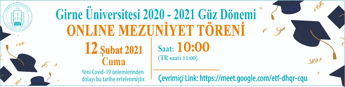 İlk kez bir mezuniyet törenimizi 19 Haziran 2020’de çevrimiçi olarak yaptık. Güz Döneminde yapılacak mezuniyet törenimizde yüz yüze görüşmek en öncelikli dileğimiz idi. Ancak bu olağanüstü şartların devam etmesi nedeni ile 2020-2021 eğitim yılının Güz Dönemi mezuniyet törenini de çevrimiçi yapmak zorunda kaldık. Mezun olan tüm öğrencilerimizi tebrik ediyoruz. Onlara bundan sonraki yaşamlarında sağlık, mutluluk ve başarılar diliyoruz.