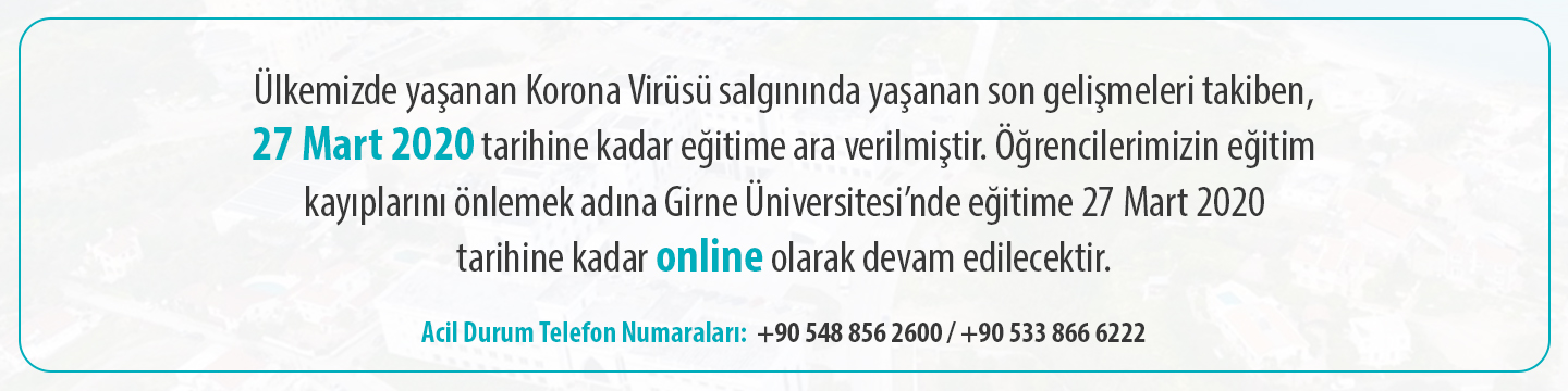 tr en tr en Hakkımızda Misyon ve Vizyon Tarihçe Stratejik Plan 2017-2022 Stratejik Plan 2022-2027 Üniversite Yönetimi Akreditasyonlar ve Kurumsal İşbirlikleri Yönetmelikler İdari Birimler Medya Merkezi Akademik Fakülteler Yüksekokullar Müfredatlar Meslek Yüksekokulları Ortak Dersler Koordinatörlüğü İngilizce Hazırlık Okulu Lisansüstü Eğitim Enstitüsü Araştırma Merkezleri Sürekli Eğitim Merkezi Seminerler 60 + Tazelenme Üniversitesi Yayınlar Öğrenciler Akademik Takvim Kampüste Yaşam Pandemi Önlem ve İzlem Planı Öğrenci İşleri Öğrenci Oturma İzni (Muhaceret İşlemleri) Konaklama Öğrenci Dekanlığı Laboratuvarlar ve Olanaklar Temel Laboratuvar İmkanları (Ortak Kullanım İçin) Denizcilik Fakültesi Diş Hekimliği Fakültesi Eğitim Fakültesi Havacılık ve Uzay Bilimleri Fakültesi İktisadi ve İdari Bilimler Fakültesi Mimarlık Bölümü Mühendislik Fakültesi Sağlık Bilimleri Fakültesi Tıp Fakültesi Büyük Kütüphane Hastaneler SSS Aday Öğrenciler Mezunlar UZEM Online Servisler Aday Öğrenciler Hakkımızda Tarihçe Misyon ve Vizyon Stratejik Plan 2017-2022 Stratejik Plan 2022-2027 Üniversite Yönetimi Etik Değerler Yönetmeliği Akreditasyonlar ve Kurumsal İşbirlikleri Kurallar ve Esaslar Yönetmelikler İdari Birimler Medya Merkezi İletişim Münhal İlanları Girne Üniversitesi Etik Kurulu Girne Üniversitesi Sürekli Eğitim Merkezi Uluslararası İlişkiler ve Diplomasi Merkezi İlgili LinklerAday ÖğrencilerSürdürülebilirlik OfisiKampüste YaşamKuzey KıbrısGirne'de Yaşam Akademik Fakülteler Yüksekokullar Müfredatlar Meslek Yüksekokulları Ortak Dersler Koordinatörlüğü İngilizce Hazırlık Okulu Lisansüstü Eğitim Enstitüsü Araştırma Merkezleri Seminerler Üniversite İntibak Kurulu 60 + Tazelenme Üniversitesi Akreditasyon Kurulu Üyeleri Listesi İlgili LinklerAkademik TakvimDers KataloğuYönetmeliklerBüyük KütüphaneYayınlar Öğrenciler Akademik Takvim Bize Ulaşın Mezuniyet İşlemleri Kılavuzu COVID-19 Çift Anadal Programları Kampüste Yaşam İnteraktif Harita Konaklama Kayıt Ofis Dilekçe Başvurusu Not Dönüşüm Tablosu Öğrenci Dekanlığı Öğrenci İşleri Öğrenci Oturma İzni (Muhaceret İşlemleri) Ulaşım Akademik Dilekçe Başvurusu İlgili LinklerFakültelerÖğrenci PortalıE-posta ServisiÖğrenci Dekanlığı Laboratuvarlar ve Olanaklar Temel Laboratuvar İmkanları (Ortak Kullanım İçin) Denizcilik Fakültesi Diş Hekimliği Fakültesi Eğitim Fakültesi Havacılık ve Uzay Bilimleri Fakültesi İktisadi ve İdari Bilimler Fakültesi Mimarlık Bölümü Mühendislik Fakültesi Sağlık Bilimleri Fakültesi Tıp Fakültesi Büyük Kütüphane Hastaneler SSS