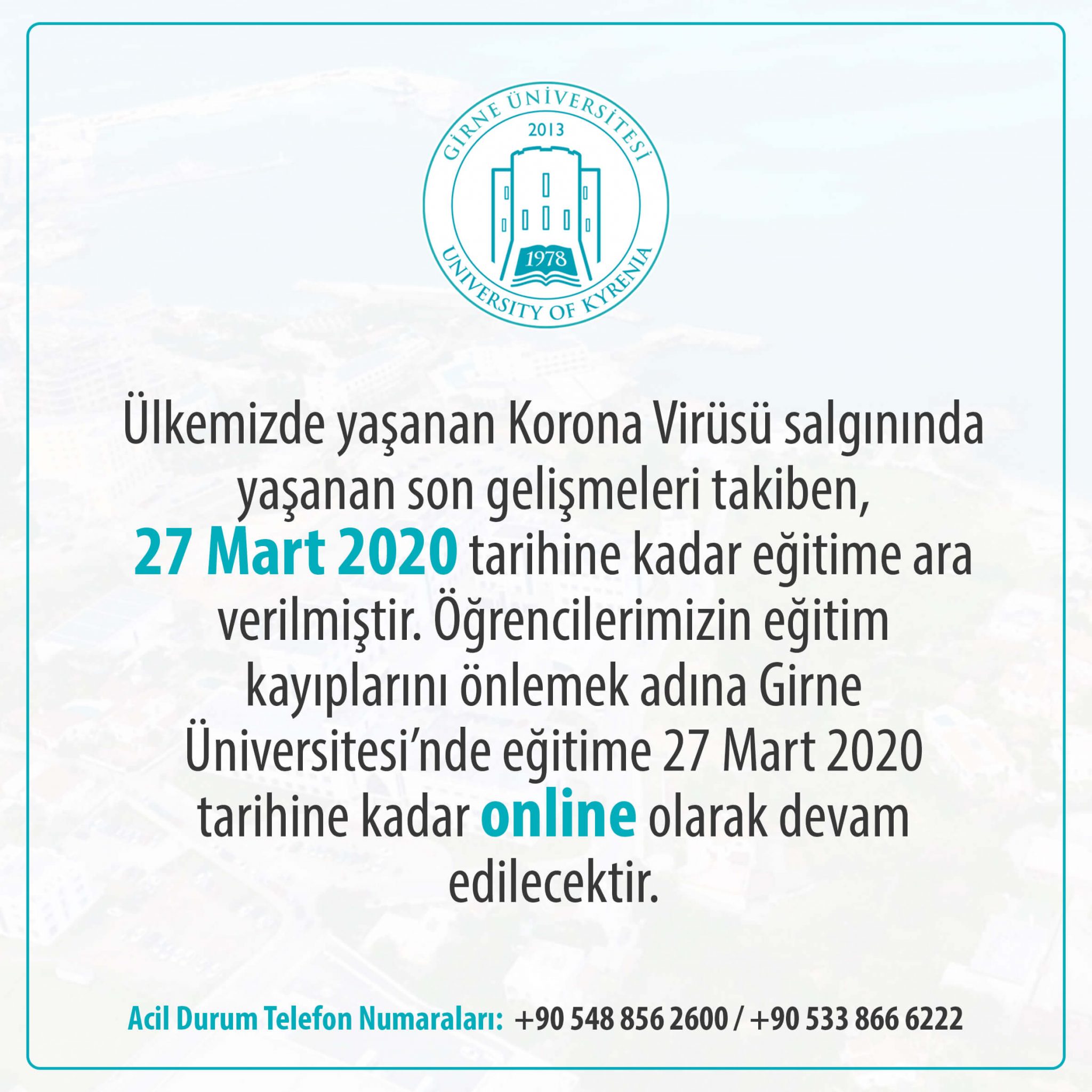Girne Üniversitesi Rektörlüğünden Öğrencilere Önemli Duyuru