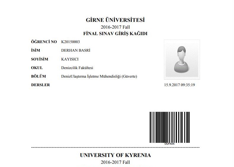 Final + Bütünleme Sınavı Giriş Belgesi: dönemlik harcın tamamının ödenmiş olması gereklidir.