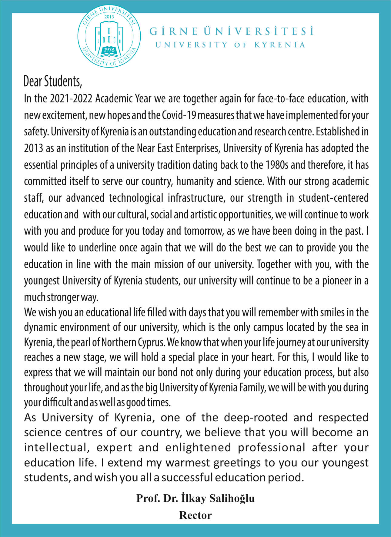 tr en tr en Hakkımızda Mission and Vision History Strategic Plan 2017-2022 Strategic Plan 2022-2027 University Administration Accreditations and Corporate Cooperations Media Center Akademik Faculties Academy Curriculum Vocational Schools Basic Courses Coordination Unit English Preparatory School Institute of Graduate Studies Research Centers Seminars 60+ Refreshment University Yayınlar Öğrenciler Academic Calendar Campus Life Student Affairs Immigration Procedures (Student Residence Permit) Accommodation Student Deanship Laboratuvarlar ve Olanaklar Core Laboratory Facilities (For Common Use) Faculty of Maritime Studies Faculty of Dentistry Faculty of Education Faculty of Aviation and Space Sciences Faculty of Economics and Administrative Sciences Department of Architecture Faculty of Engineering Faculty of Health Sciences Grand Library Hospitals FAQ Aday Öğrenciler Alumni UZEM Online Services Prospective Students About Us History Mission and Vision Strategic Plan 2017-2022 Strategic Plan 2022-2027 University Administration Ethical Values Regulation Administrative Units Accreditations and Corporate Cooperations Rules and Guidelines Regulations Media Center Contact Job Vacancies University of Kyrenia Continuing Education Centre Center for International Relations and Diplomacy Related LinksProspective StudentsSustainability Office Campus LifeNorth CyprusKyrenia Life Academic Faculties Academy Curriculum Vocational Schools Basic Courses Coordination Unit English Preparatory School Institute of Graduate Studies Research Centers Seminars 60+ Refreshment University Accreditation Board Related LinksAcademic CalendarCourse CatalogueRegulationsGrand LibraryPublications Students Academic Calendar Contact Us Graduation Procedures Guide COVID-19 Double Major Programs Campus Life Student Permit Procedure Accommodation Registration Office Petition Student Deanship Student Affairs Immigration Procedures (Student Residence Permit) TRNC State Scholarships for International Students Transportation Academic Petitions Related LinksFacultiesStudent PortalE-mail ServiceDean of Students Office Labs and Facilities Core Laboratory Facilities (For Common Use) Faculty of Maritime Studies Faculty of Dentistry Faculty of Education Faculty of Aviation and Space Sciences Faculty of Economics and Administrative Sciences Department of Architecture Faculty of Engineering Faculty of Health Sciences Grand Library Hospitals FAQ