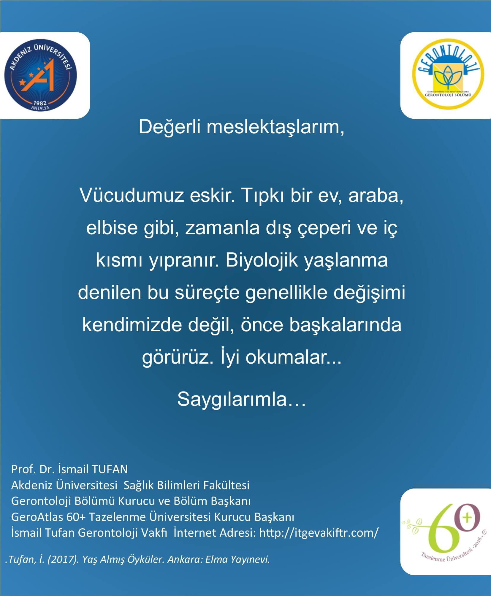 Eklenme Tarihi: 18 Mart 2020, 10:34 Paylaş: Özel ve Genel Yaşlı Tasavvurlarımız – Prof. Dr. İsmail Tufan