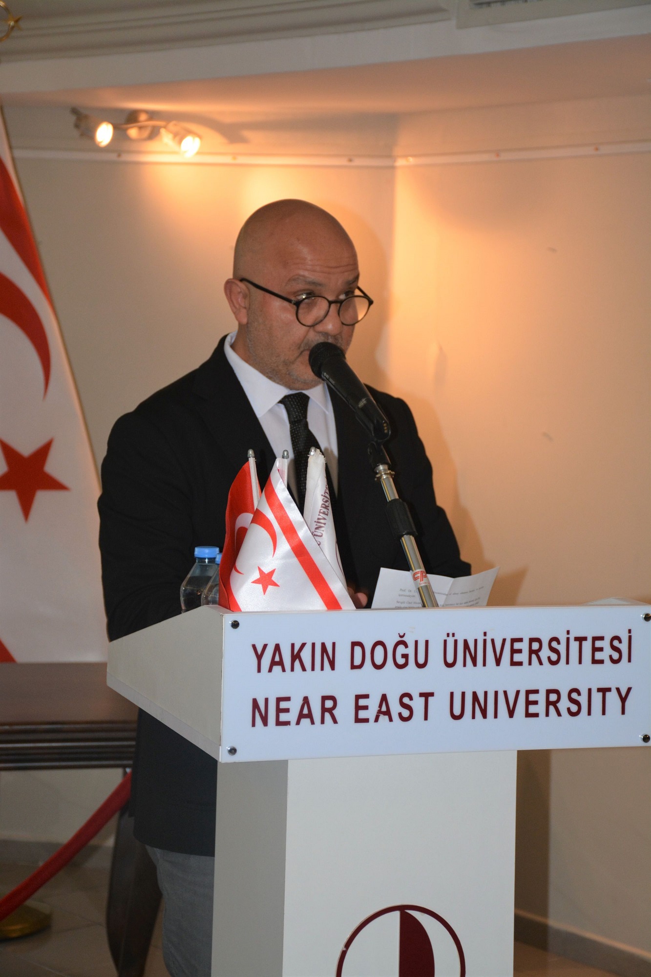 Near East University Rector Prof. Dr. Tamer Şanlıdağ said in his speech, “I have had the honor of addressing you at the opening of many exhibitions organized by our Cyprus Museum of Modern Arts. However, today, with mixed feelings, I am here to have one of the most private conversations of my life.”, expressing his feelings.