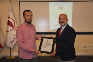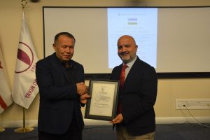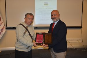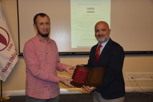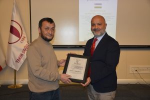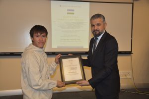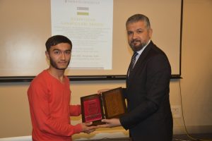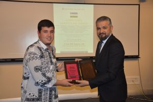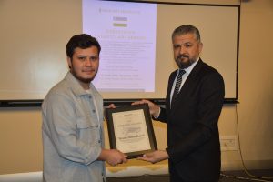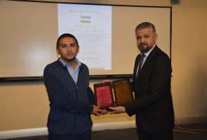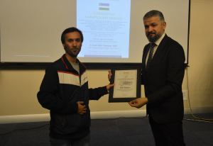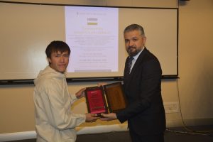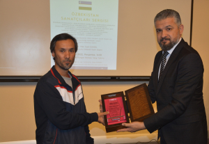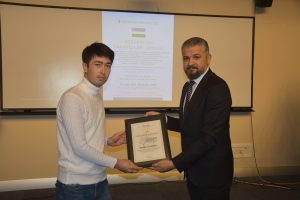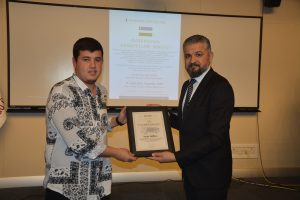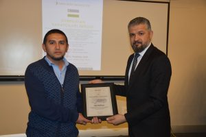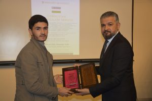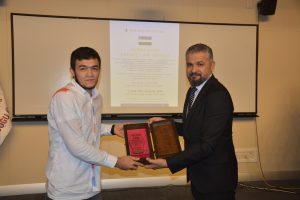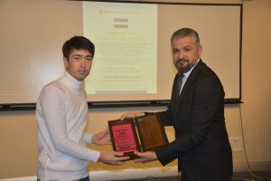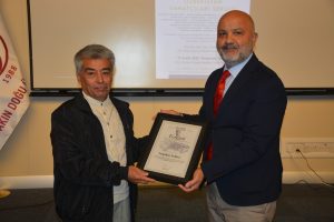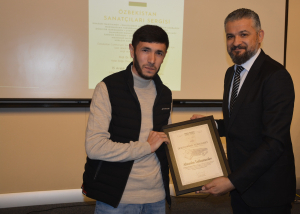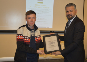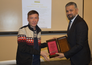 Oybek Isakdjanov, Utkir Rakhimov, Mirazim Ashirov, Alimardon Tukhtamurodov, Farrukh Tukhtamurodov, Akbar Odilov, Nuriddin Ziyoniddinov, Miryakhyo Makhmudkhojizoda, Javokhir Ubaydullaev, Makhmud Mutalov and Sardor Sıddıkov received the “Dogdurberk Nurgaziev Award”, within the scope of Alasia Awards given in memory of Kyrgyz state artist Dogdurbek Nurgaziev, from the Dean of the Faculty of Arts and Sciences of the Near East University and the Head of the Museums Department of the Near East Enterprises Prof. Dr. Ali Efdal Özkul.