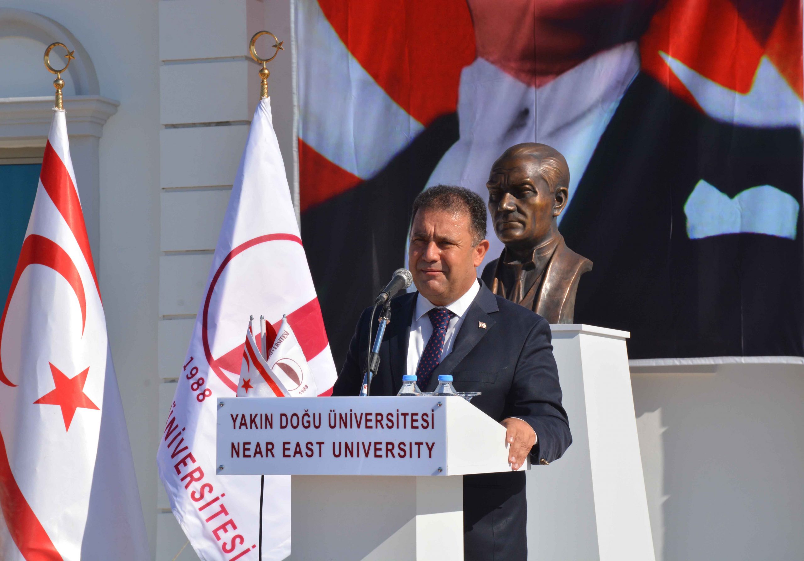 Pandemi döneminde aldıkları önlemlere de değinen Başbakan Ersan Saner, salgının ciddiyetini gösteren istatistikleri sıraladıktan sonra, “Yakın Doğu Oluşumunun COVID-19’a yönelik geliştirdiği yerli PCR Tanı Kiti ve koruyucu burun spreyi gibi adımlar ülkemize bu süreçte güç kattı. Yakın Doğu Oluşumu’nun aşı çalışmalarını da aynı başarıyla tamamlayarak ülkemize bu gururu da yaşatacaklarına inancım tamdır” ifadesini kullandı.