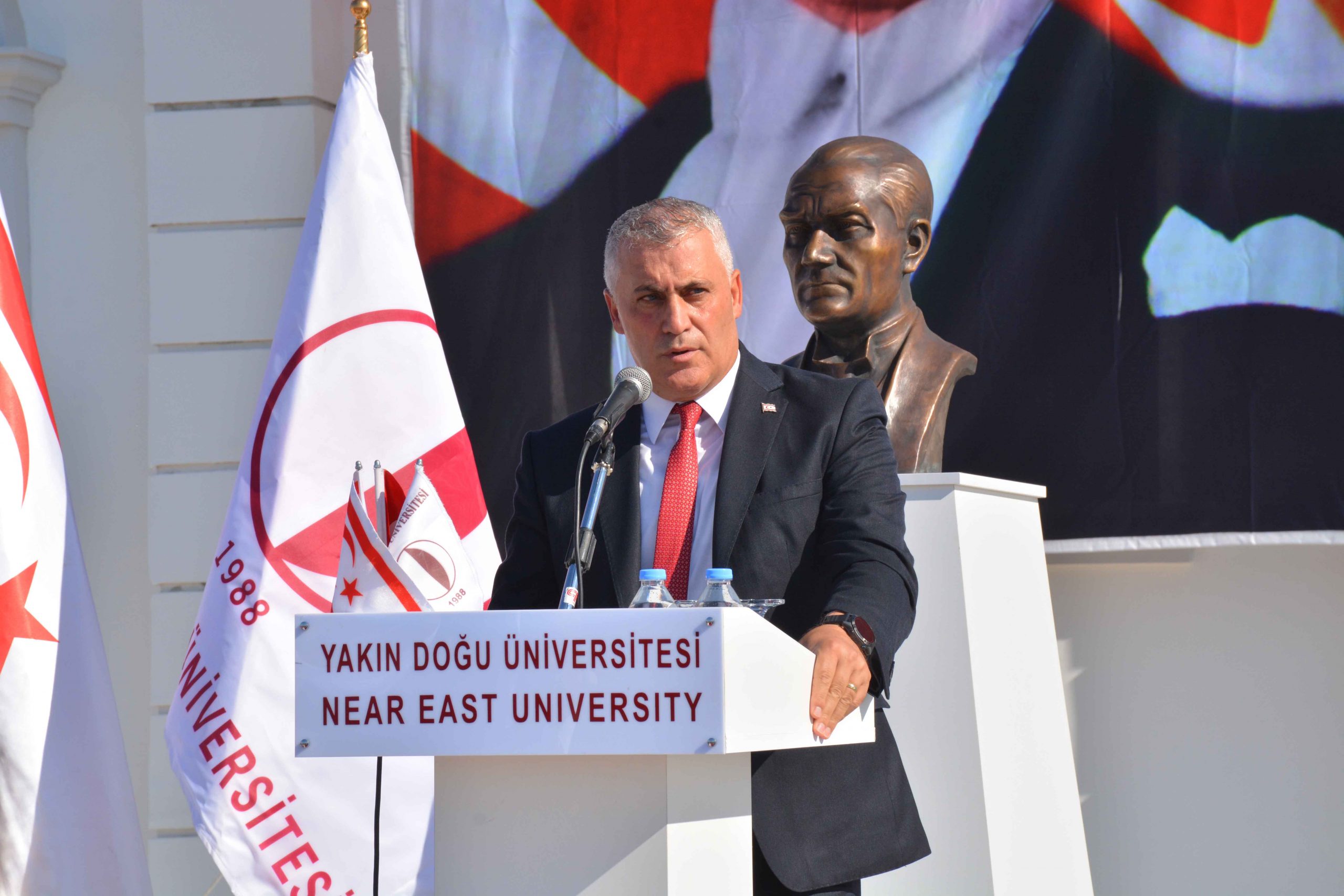 Konuşmasında Milli Eğitim ve Kültür Bakanlığı ve Türk Tarih Kurumu’nun Girne Üniversitesi’nin ev sahipliğinde ortaklaşa düzenlediği “Kıbrıs Türk Tarihi ve Öğretimi” başlıklı panele de değinen Prof. Dr. İrfan Suat Günsel, Yakın Doğu Üniversitesi ve Girne Üniversitesi olarak Kıbrıs Tarihini, zorunlu ders olarak eğitim müfredatına aldıklarını da açıkladı. Prof. Dr. Günsel, “Kıbrıs tarihini sadece kendi gençlerimize değil, yüksek öğretim için ülkemizi tercih eden öğrencilerimize de doğru bir şekilde aktararak, ülkemizde ve dünyada Kıbrıs Tarihinin doğru bir şekilde öğrenilmesini sağlamanın önemli bir tarihsel sorumluluk olduğuna inanıyoruz. Bu sorumluluğun en özel dayanağı ise, kendi tarihimize sahip çıkarak, 1974’te canından can vererek bizlere devlet bağışlayan ulus devlete, Türkiyemize ve bu uğurda verdiğimiz şehitlere olan borcumuzu unutmamak ve unutturmamaktır!” ifadesini kullandı.