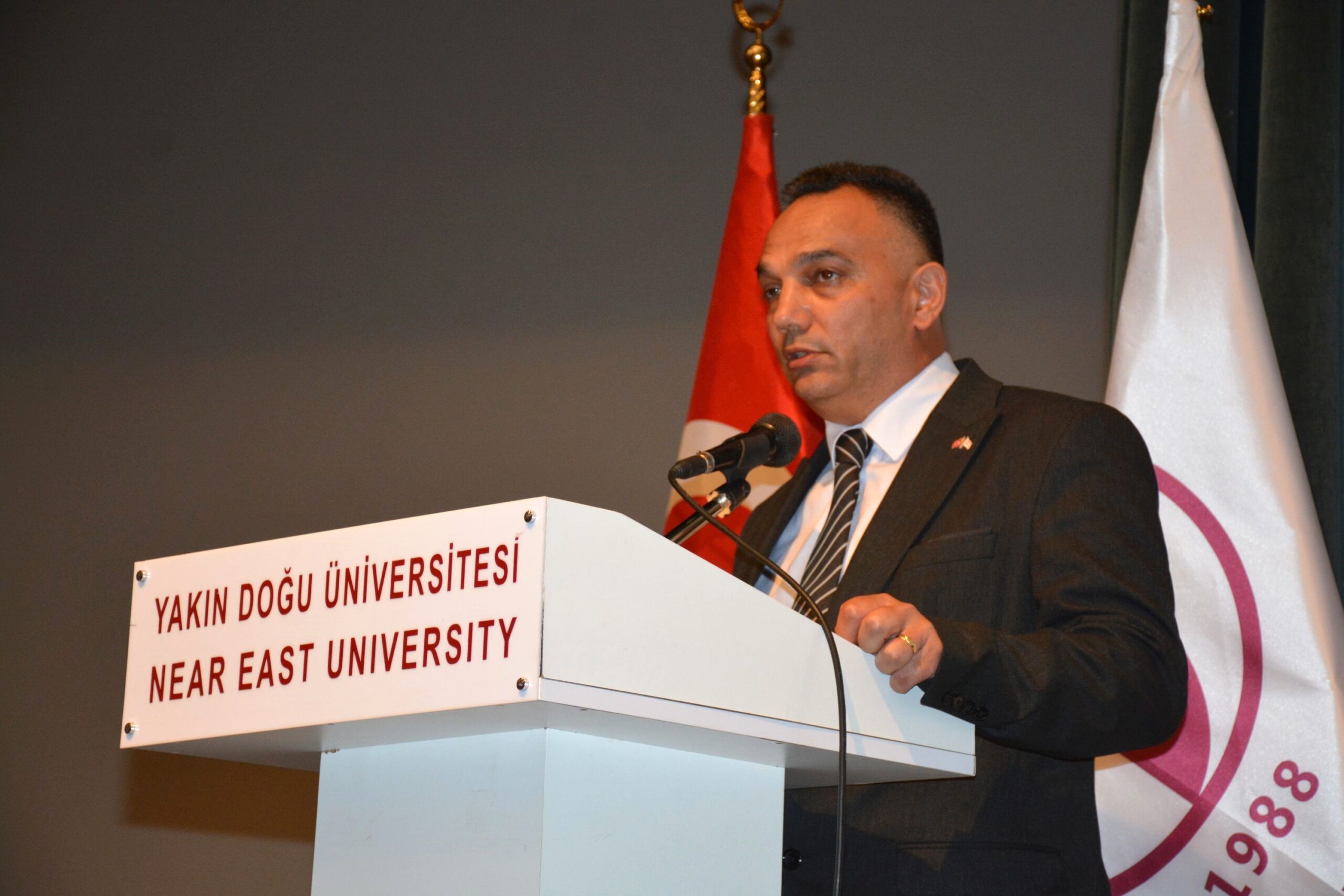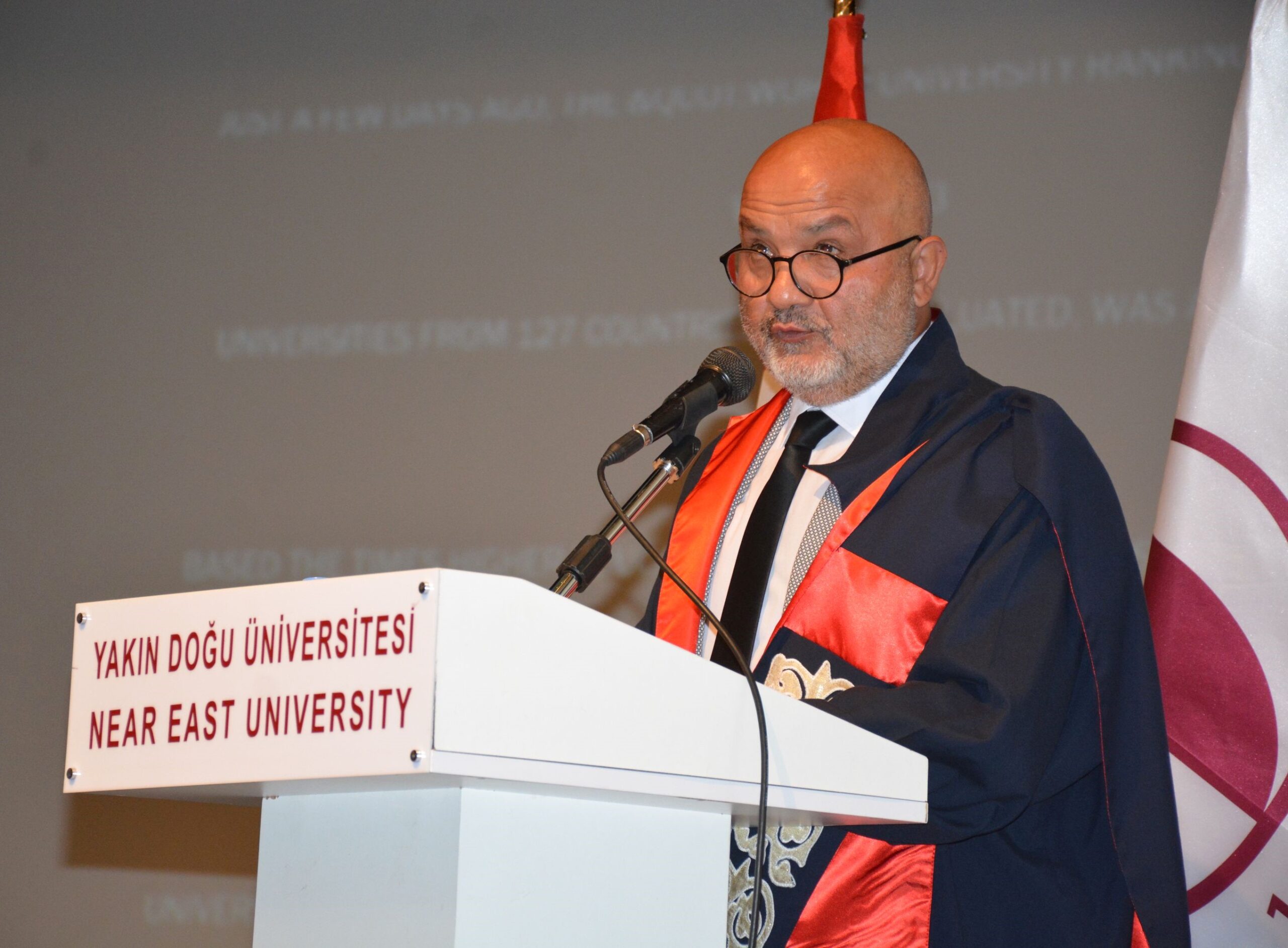 Konuşmasına, Yakın Doğu Üniversitesi’nin Londra merkezli The Times Higher Education (THE) tarafından “Dünya Üniversiteler Sıralaması 2024”listesindeki başarısını hatırlatarak başlayan Yakın Doğu Üniversitesi Rektörü Prof. Dr. Tamer Şanlıdağ, “Yakın Doğu Üniversitesi, KKTC’nin en iyi üniversitesi ve Türkiye’nin en iyi üçüncü üniversitesi unvanını paylaşarak; dünya genelinde 601-800 bandında yer aldı. Ve bugün, gururla söylemek isterim ki; dünyanın en iyi üniversitelerinden birinin kampüsünde bir aradayız!” dedi.