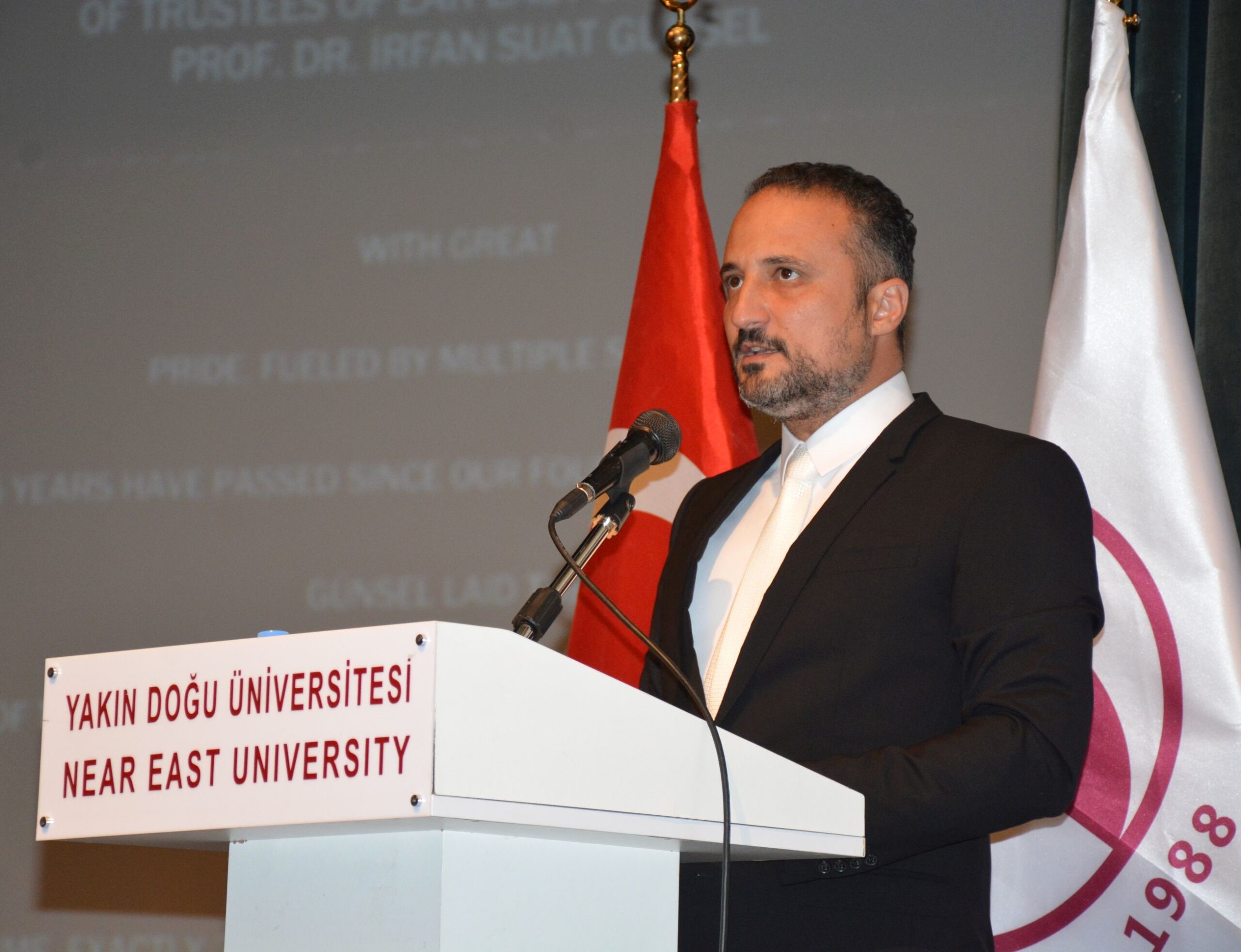 “Bugün 143 ülkede 30 bine yakın öğrencisi ile uluslararası bir kampüs üniversitesi olan Yakın Doğu Üniversitesi; bilimin, sanatın, teknolojinin, sporun, pek çok uluslararası başarının ve yaşamın yeşerdiği bir vahadır” diyen Prof. Dr. İrfan Suat Günsel, “Bizlere düşen ise bu vahayı yeşertmeye ve büyütmeye devam etmek, durmadan çalışmak, araştırmak, geliştirmek ve üretmek” ifadelerini kullandı.